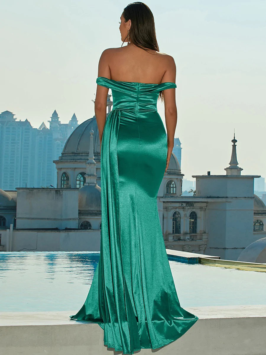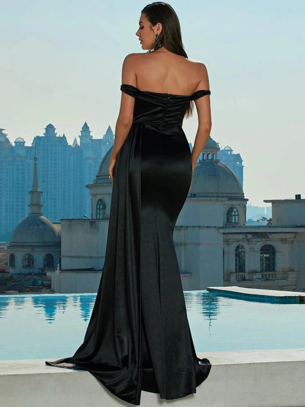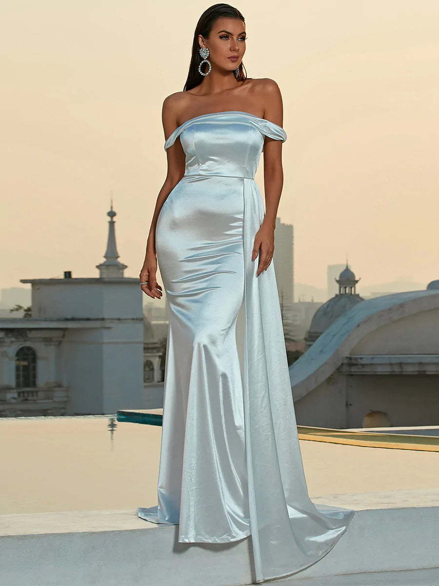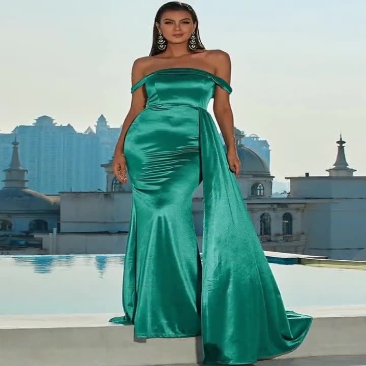 احصل على مظهر كلاسيكي ترتدي هوليوود القديم للسيدات من فستان الكتف مع تنورة Mermaid Maxi التي تعانق شخصيتك وتظهر منحنياتك. وشاح طويل الستائر لأسفل من الخصر إلى الأرض.