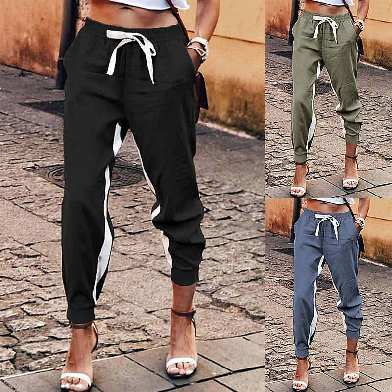 ربط الخصر كابري طول سراويل مخططة في المناطق الحضرية