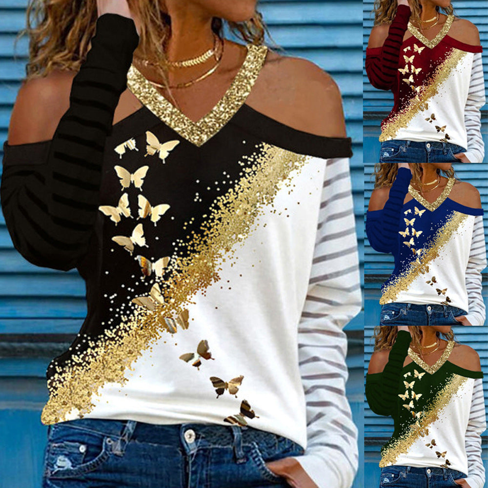 قبالة الكتف الطويل الأكمام الفراشة اللامعة