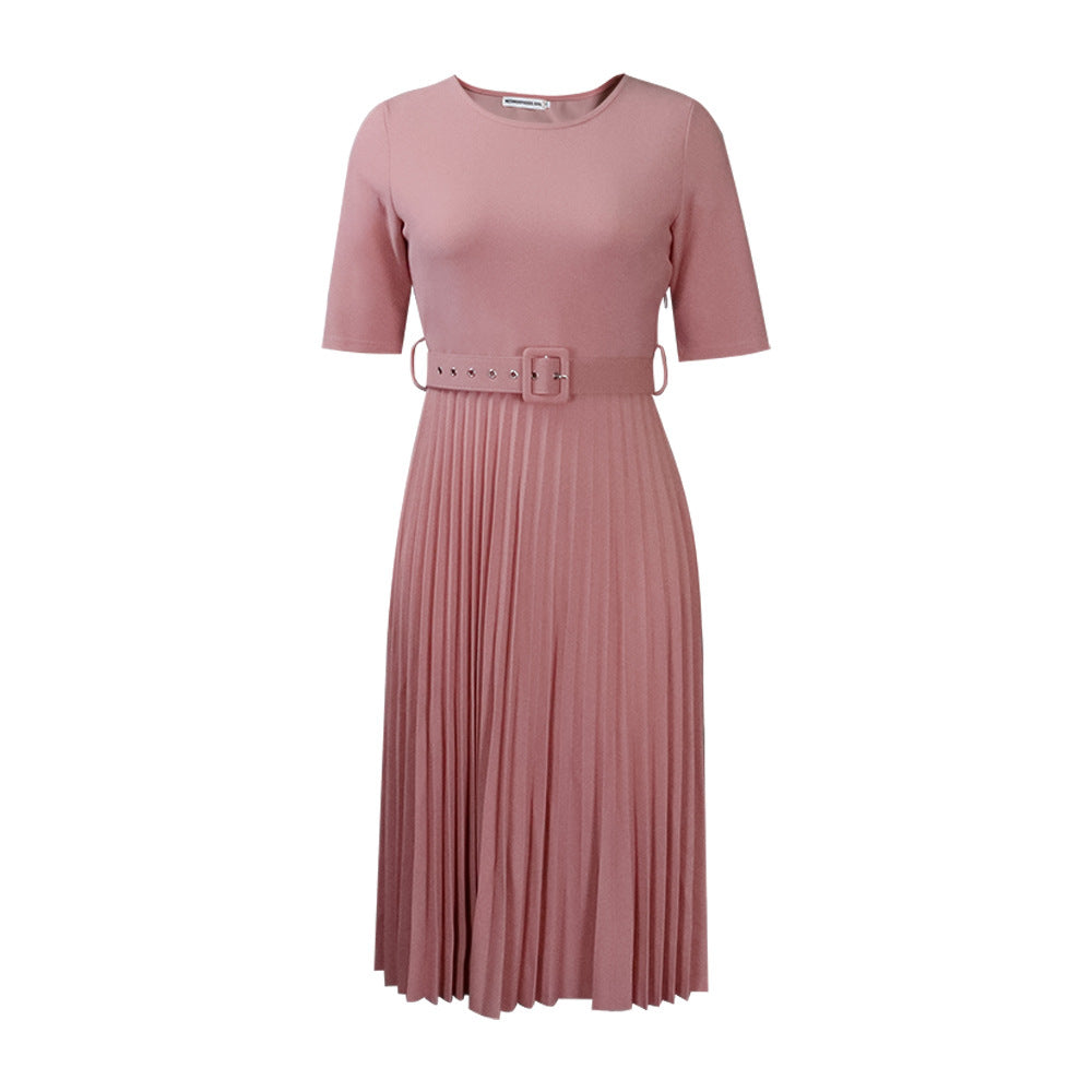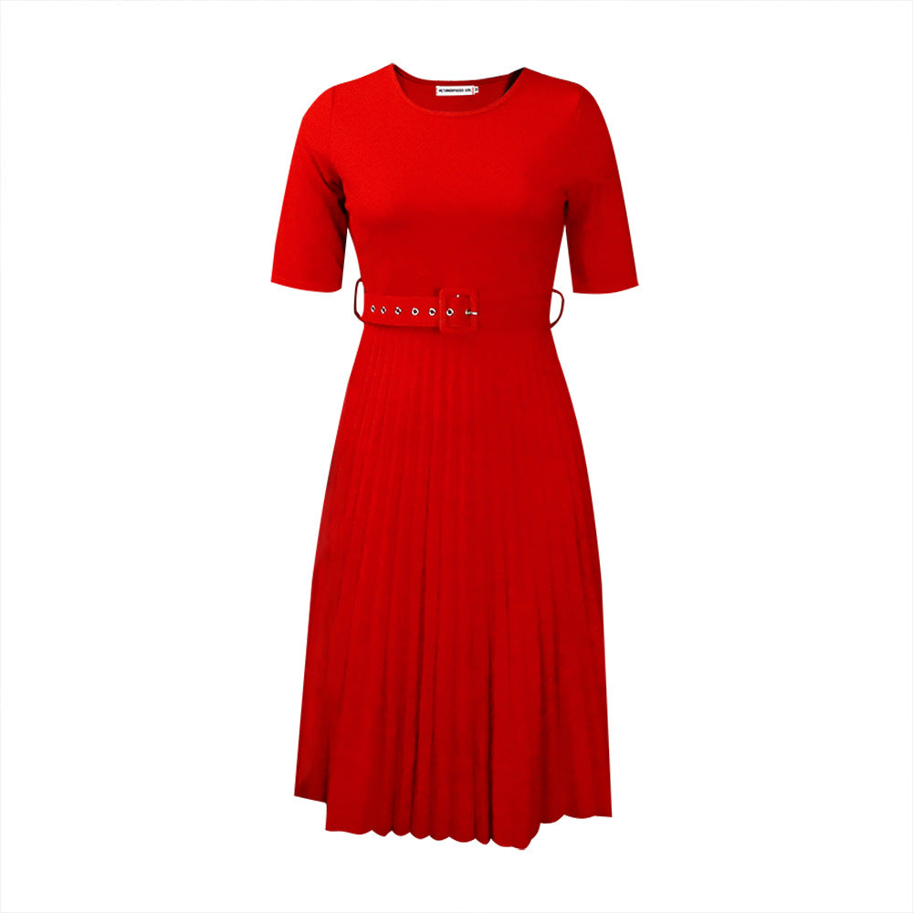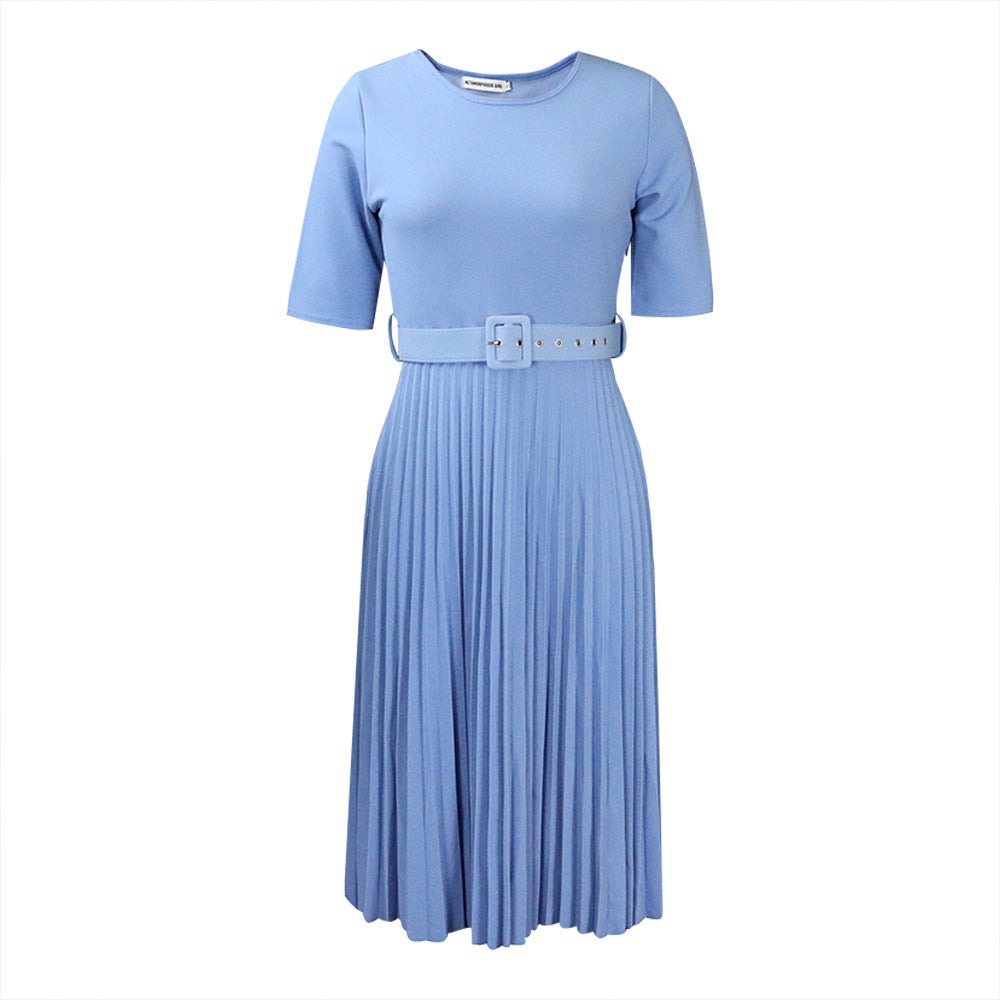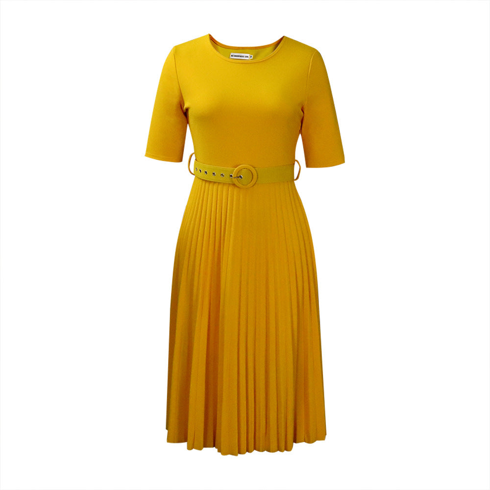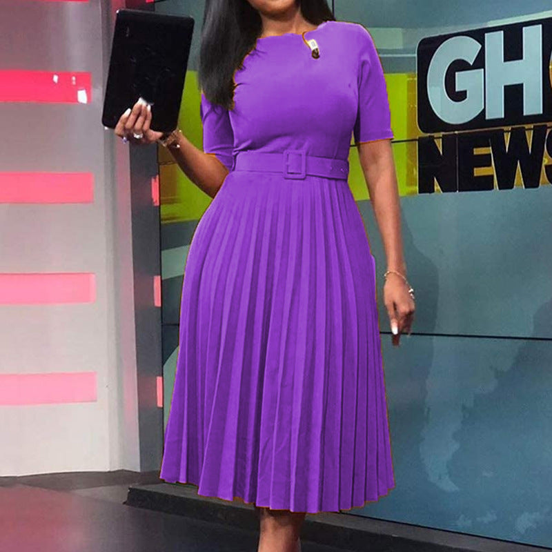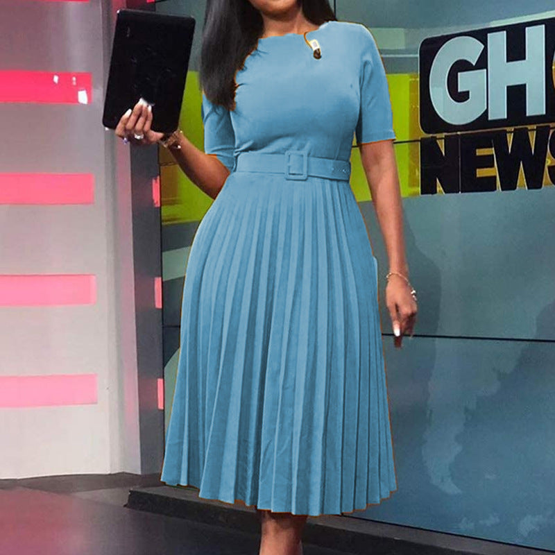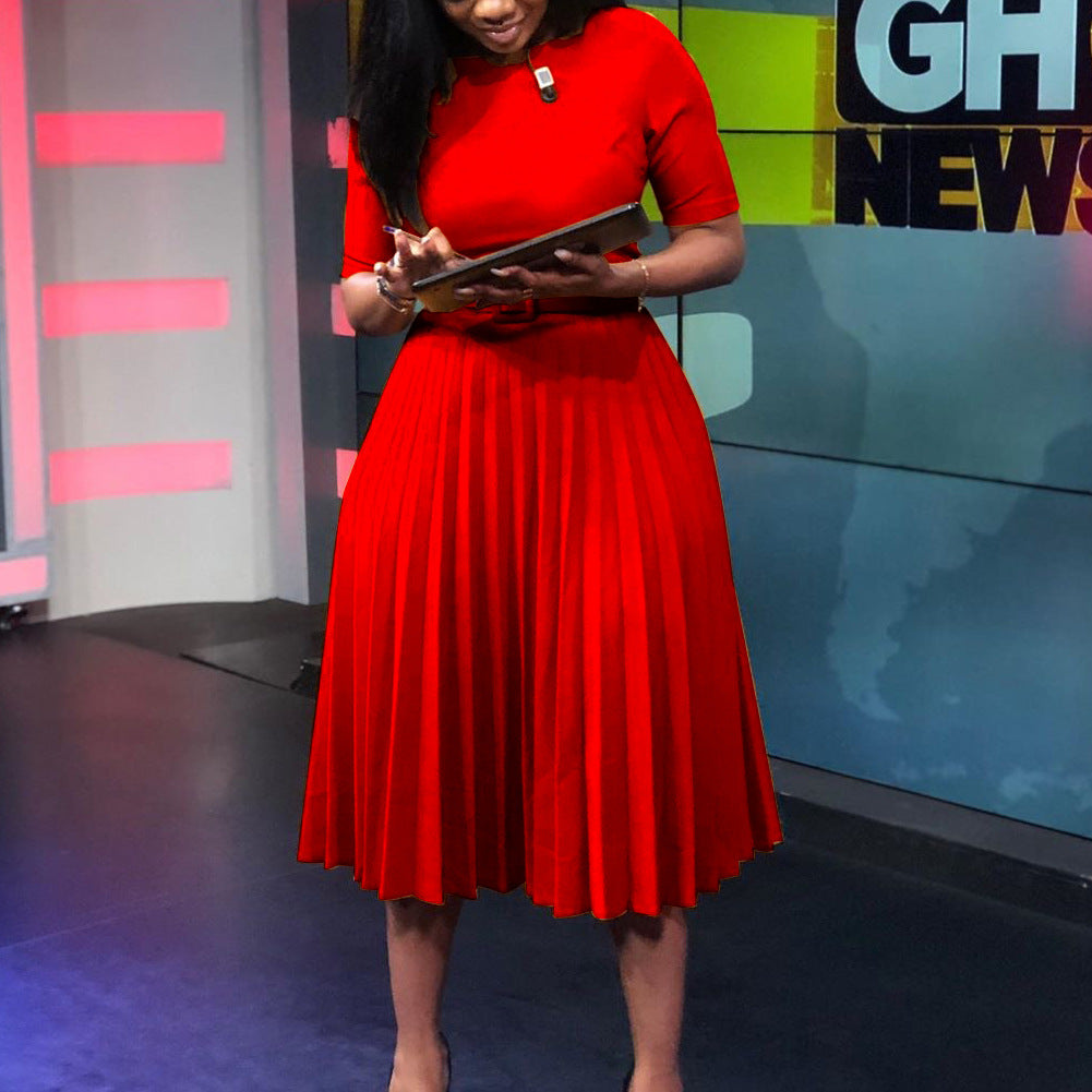 اجعل الأمر بسيطًا في العمل أو في غداء مع فستان Midi القصيرة للأكمام القصيرة للسيدات ، وهو يتميز بتنورة متتالية بشكل جميل من الخصر. الخصر مغرور لاستخلاص شكل منحنياتك.