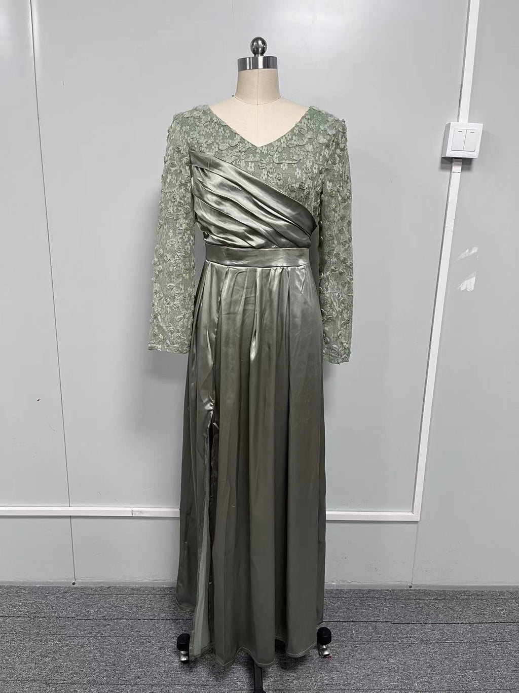 اخرج من الأناقة ارتداء فستان ماكسي الأكمام الطويلة للسيدات مع شق الفخذ والفخذ. يتميز هذا اللباس بوفد محكم يؤدي إلى تنبة حريرية وحريرية ذات طول ماكسي.