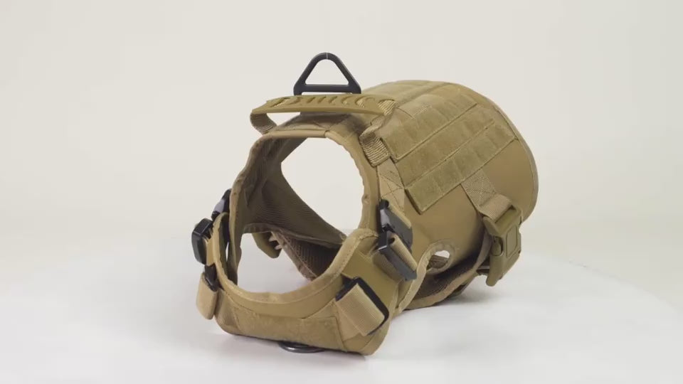 1. Military-standard Material: Two Metal Shoulder Buckles can bear great pulling force, ensuring your dog is safely harnessed during training, hunting, working, and any other occasion.