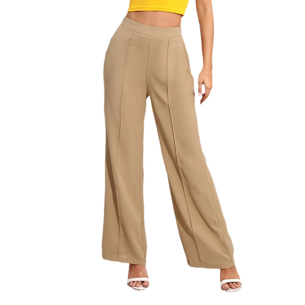Complete your collection of business casual staple pieces with the Women's High Waist Elastic Band Slacks with Wide Leg that comes in a neutral brown hue.