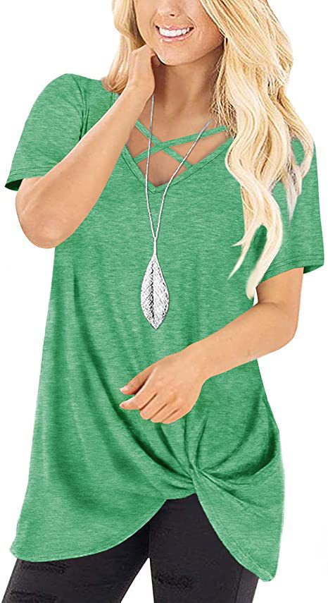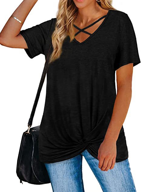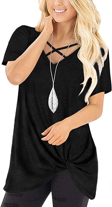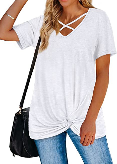 Mit dem Krawattenknoten vorne und der Riemchenbrust ist dieses locker sitzende Krawattenknoten-Shirt von StrappyWomen für immer süß und trendy. Es ist aus angenehmer Baumwolle gefertigt.