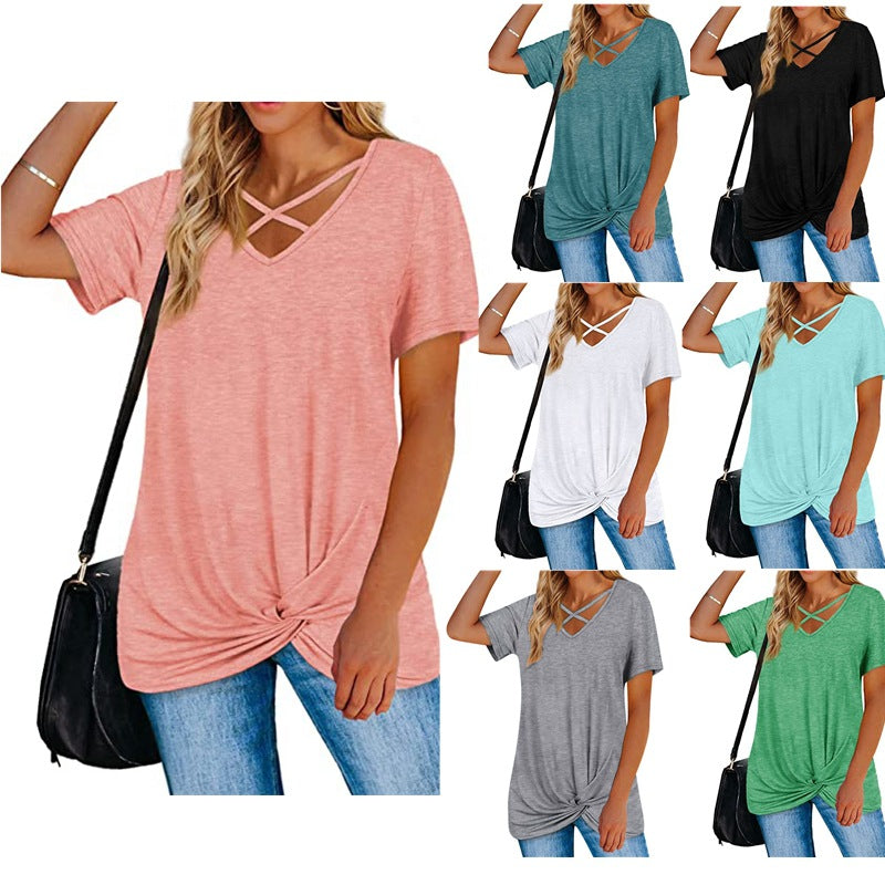 Locker sitzendes Krawattenknoten-Shirt für Damen mit Riemchen