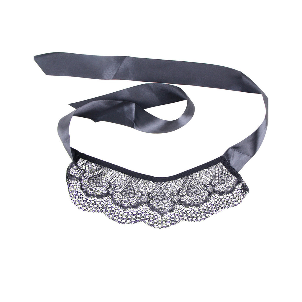 Ein auffälliger Spitzen-BH wird mit einem verzierten Mittelstück, das sich über die Vorderseite der Taille erstreckt, mit dem passenden Spitzenhöschen verbunden.
