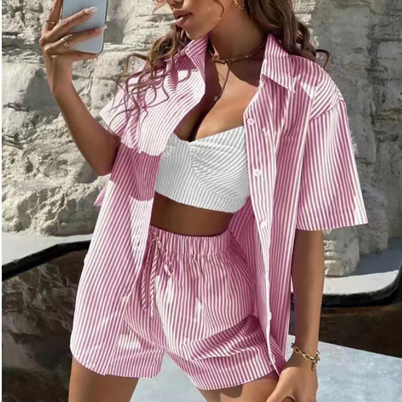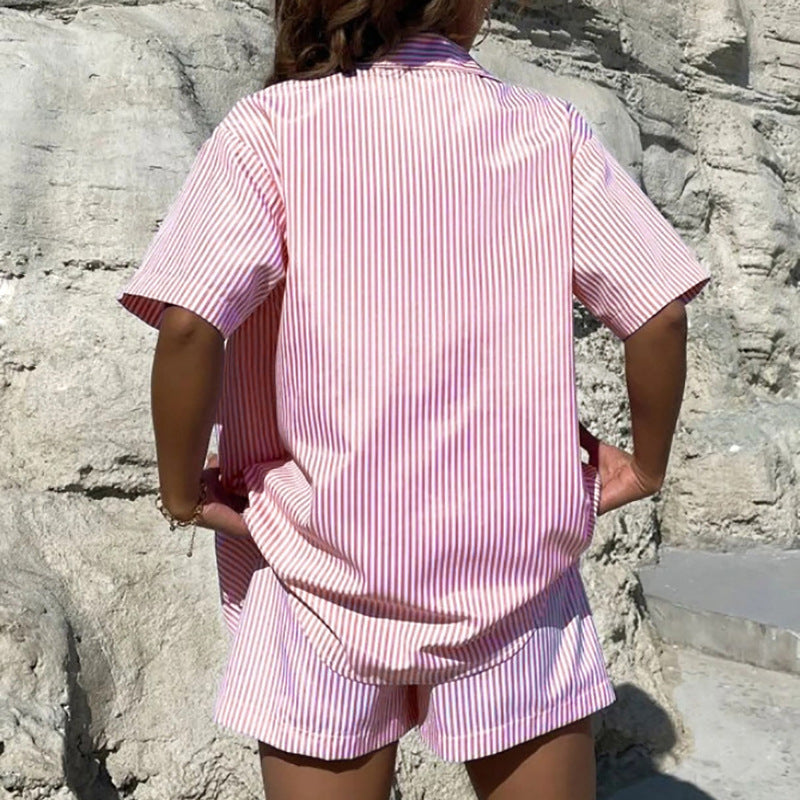 Women's Two Piece Striped Silky Lounge Set