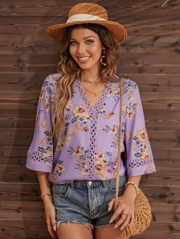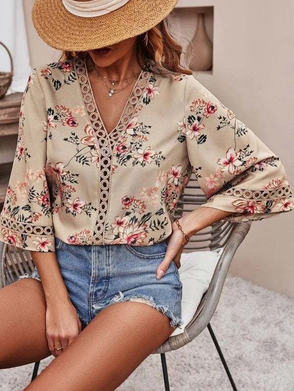 Prepárate para salir y disfrutar de tu día con esta camisa estampada de manga tres cuartos con costuras de encaje y escote en V profundo para mujer. Viene en un patrón floral colorido único. Es ideal para esos meses de calor en los que empieza a subir la temperatura. ¡Destaca entre la multitud con este vestido de mujer con estampado floral! ¡Combínalo con accesorios mínimos y tendrás el atuendo perfecto en un instante! Este artículo será una adición elegante al resto de tus prendas de verano. El diseño simple y versátil hace que este vestido sea perfecto para el uso diario. ¡Este vestido floral de manga tres cuartos es un fondo de armario! ¡Simplemente agrega un par de tacones para lograr el mejor look glamoroso! Un vestido esencial para el verano, la primavera y las ocasiones.