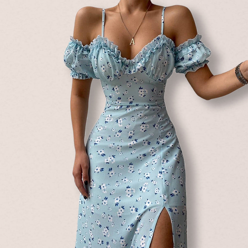 Perfecto para los días de campo de primavera y las citas de la tarde de verano, el vestido veraniego de largo midi con escote corazón y hombros descubiertos es una opción con la que no puedes equivocarte. Elija entre uno de los seis colores y patrones.