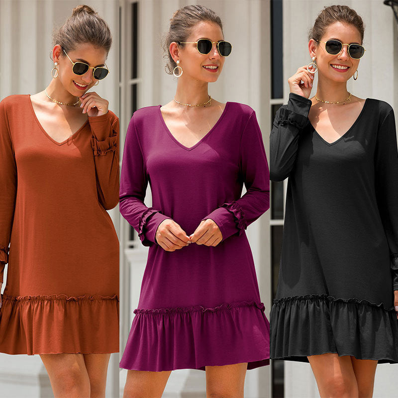 Manténgalo simple este verano con el mini vestido de manga larga con cuello en V para mujer con falda plisada. El vestido es holgado para su comodidad y viene en varias opciones de colores de moda.