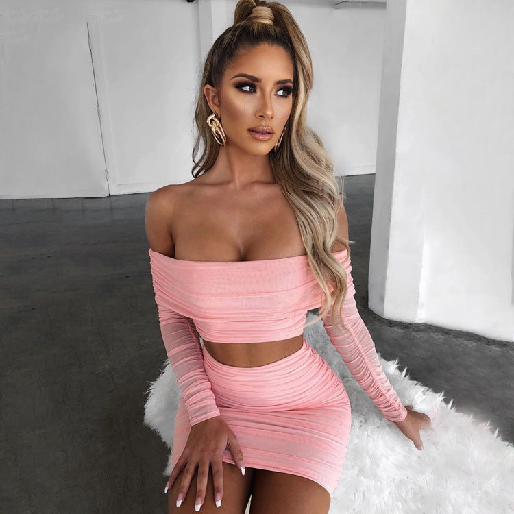 Se ve linda y atractiva en el juego de topes y faldas de lápiz de dos piezas para mujeres. Este conjunto presenta las mangas del hombro y un escote que se encuentra en línea con las mangas.
