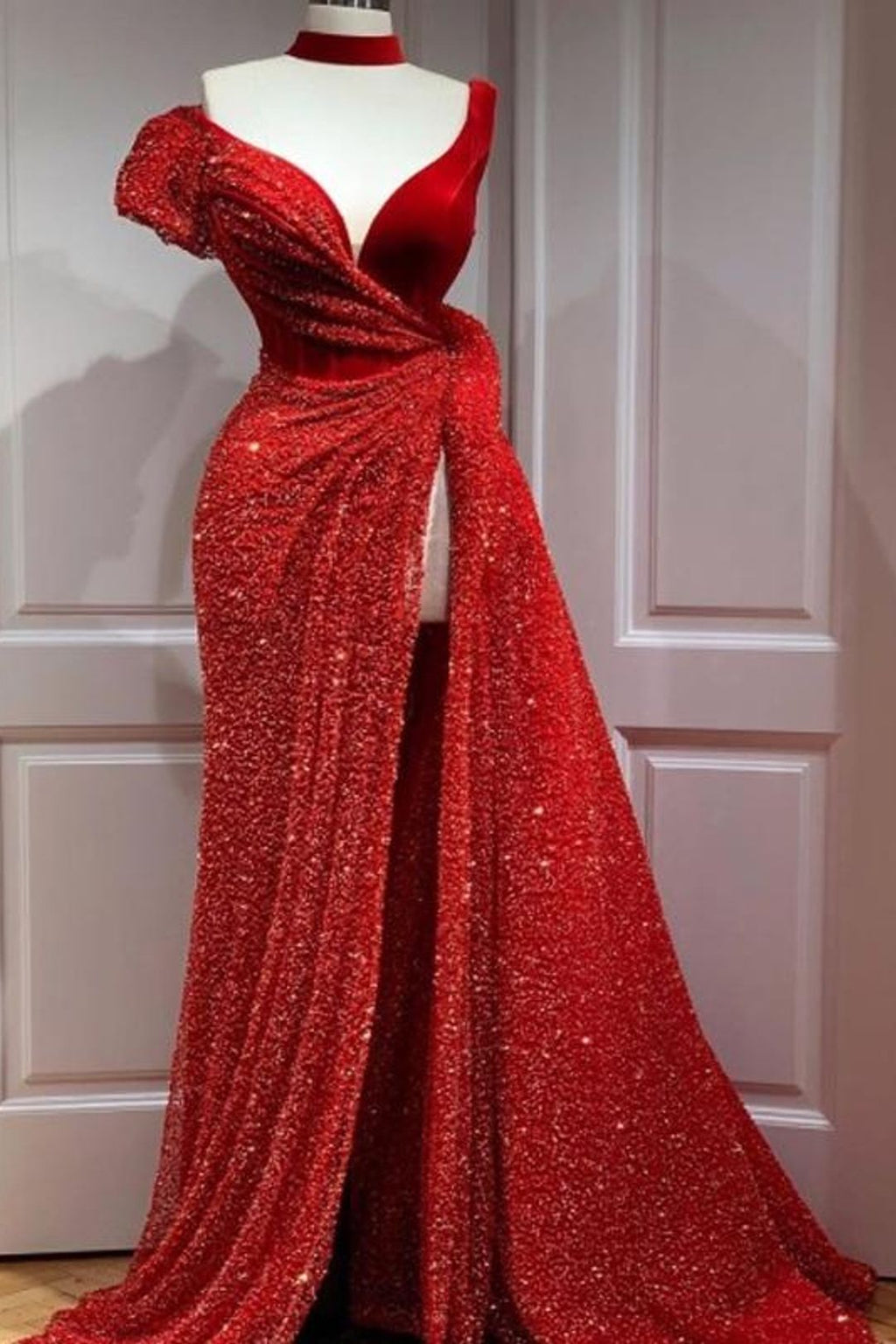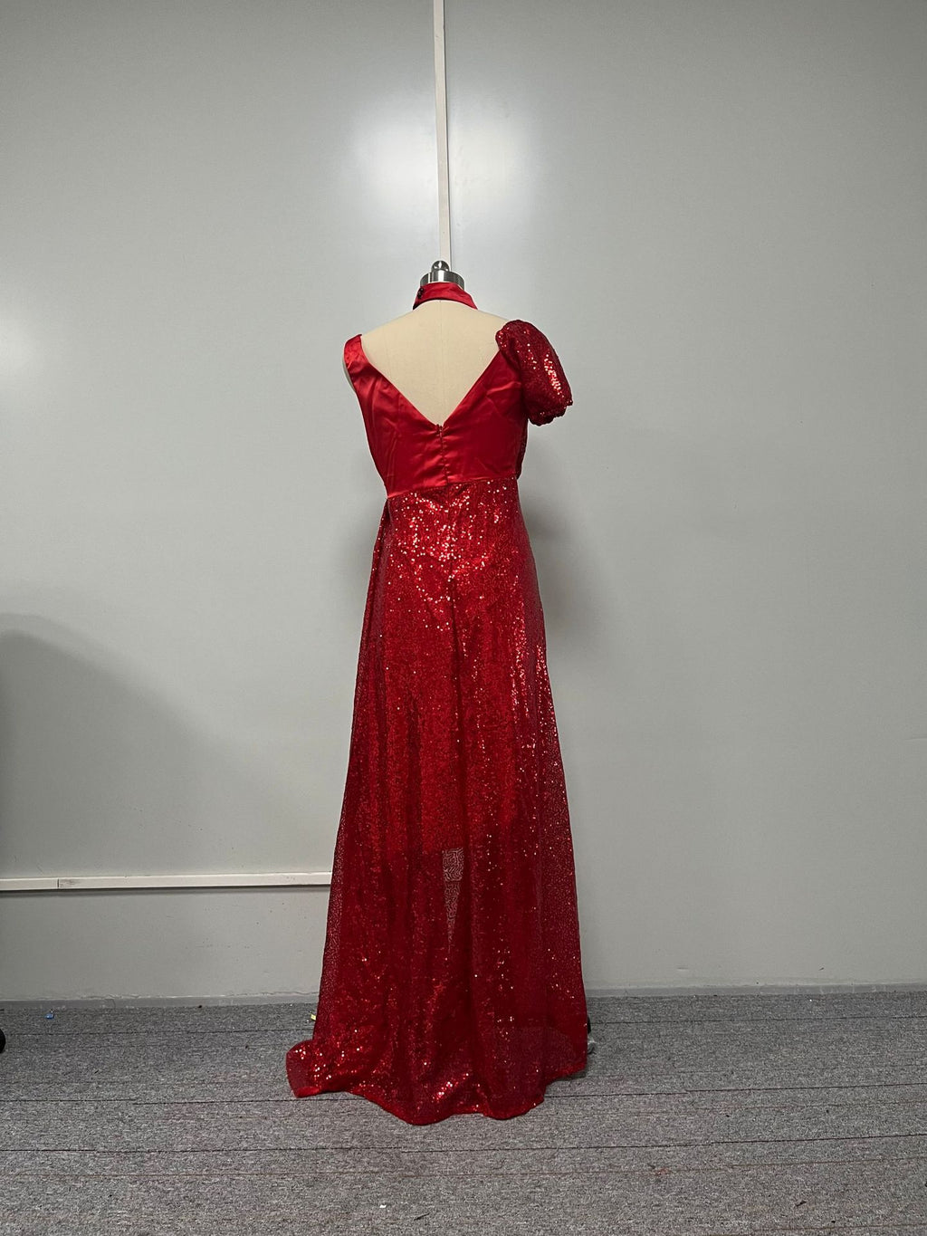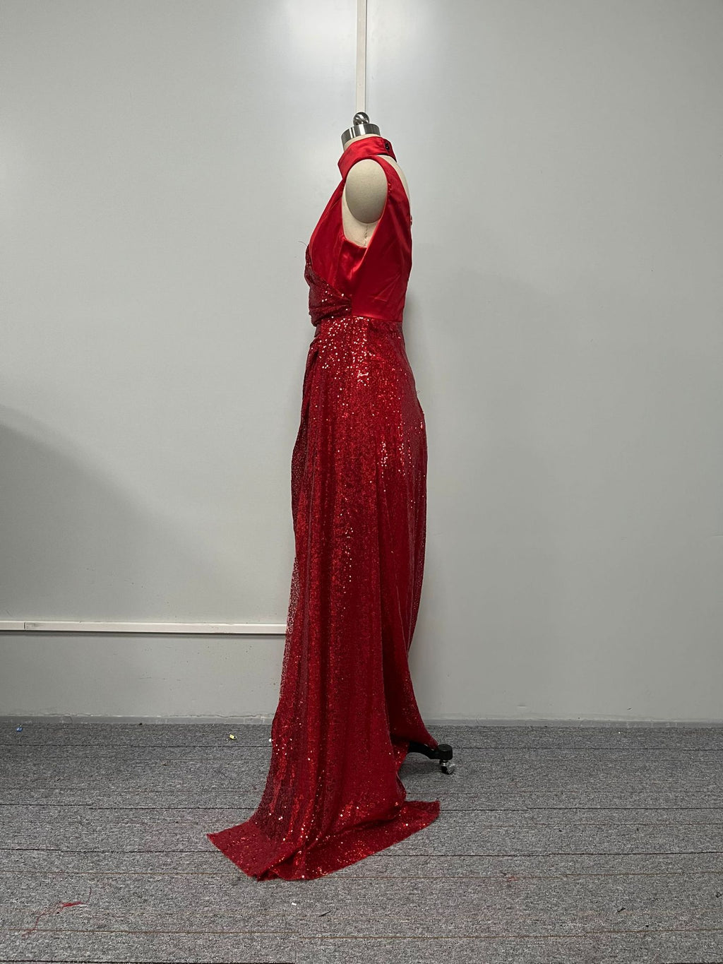 Coqueto y seductor, el vestido largo con hombros descubiertos para mujer con abertura alta en el muslo y escote en V se destaca entre el resto. Tiene un exclusivo cuello estilo gargantilla y se pliega en una cadera para darle a tu silueta un ajuste espectacular.