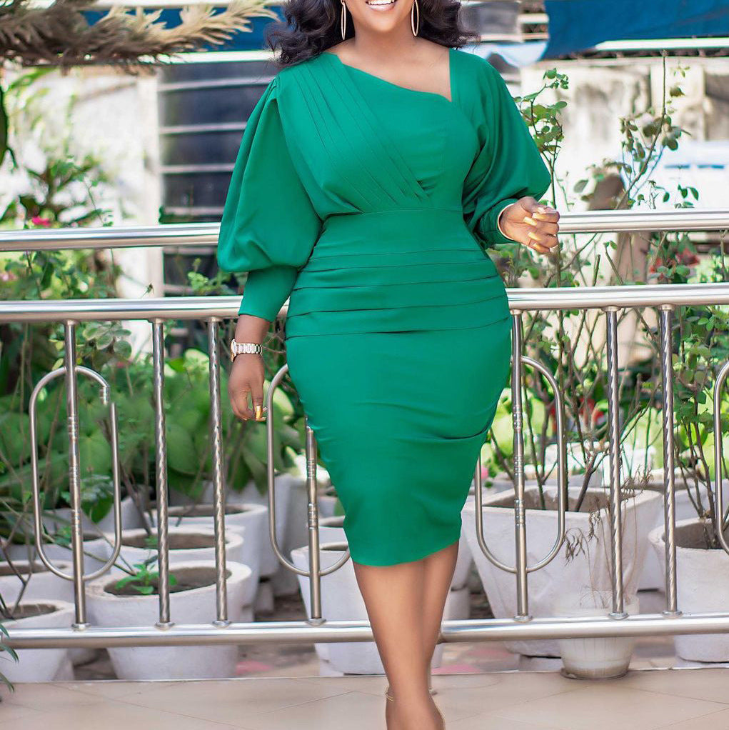 Celebre su figura con este favorecedor vestido a media pierna de tres cuartos de largo ajustado para mujer con mangas ondulantes que contrastan con el estilo contorneado del vestido. Elige uno de los tres colores tierra.
