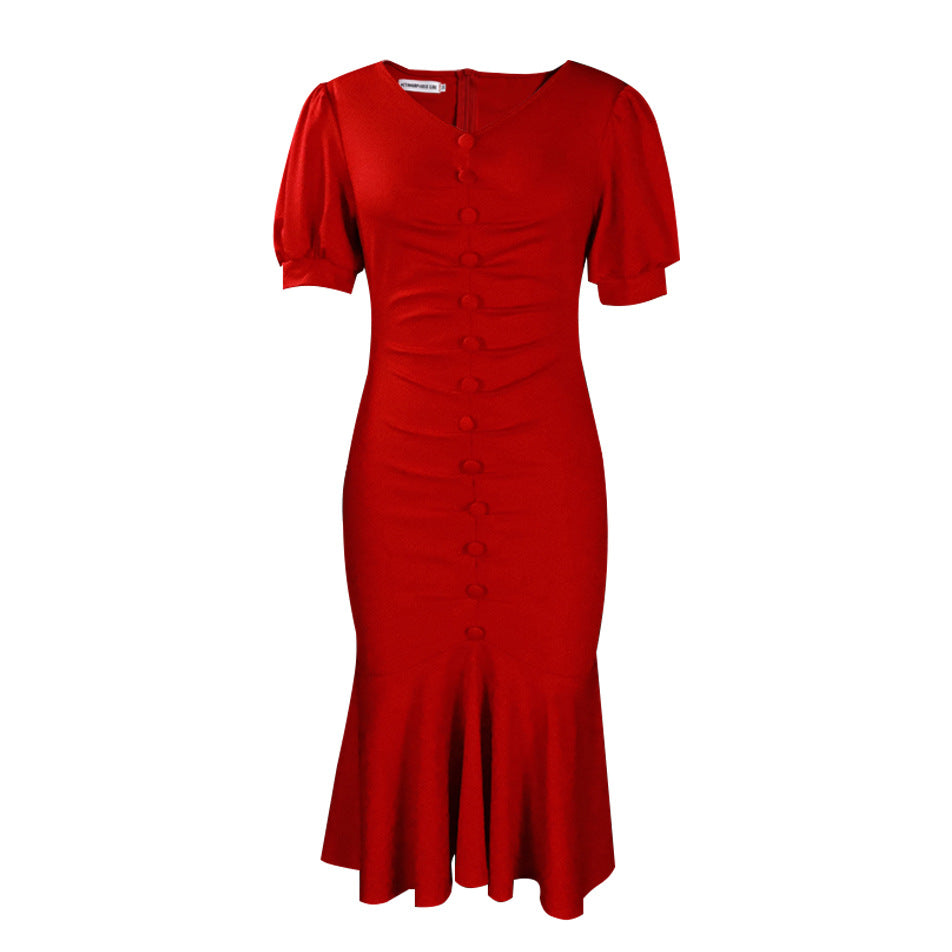 Este vestido midi ajustado con botones en la parte delantera para mujer con mangas abullonadas es una prenda versátil ideal para usar de día o de noche. Cuenta con su elección de opciones de color para adaptarse a su gusto y sentido del estilo.