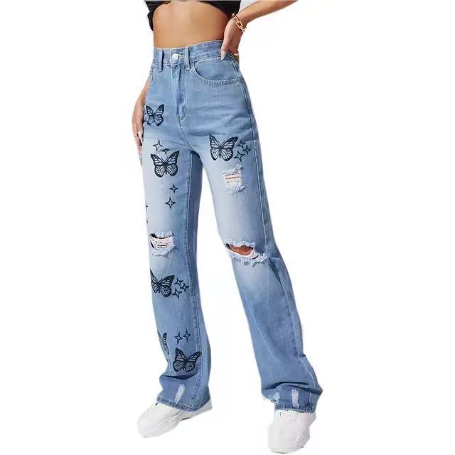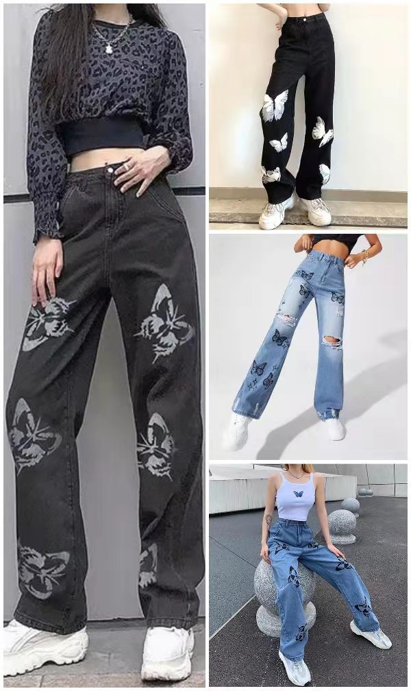 Look the part this spring wearing the Women’s Straight Leg Pants with Butterfly Accents. These jeans come in three colors and feature butterfly graphics that line the front of the legs.