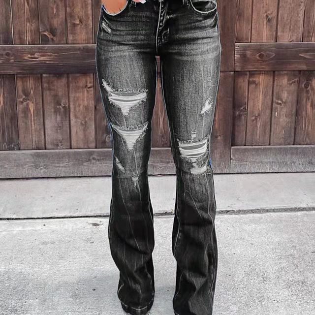 L'aspect des jeans déchirés et des jambes évasées est de retour dans le style, et vous pouvez sauter sur la tendance avec le jean en jean de jambe évasé de ces femmes avec des déchirures. Ces jeans viennent en denim clair, foncé ou noir.