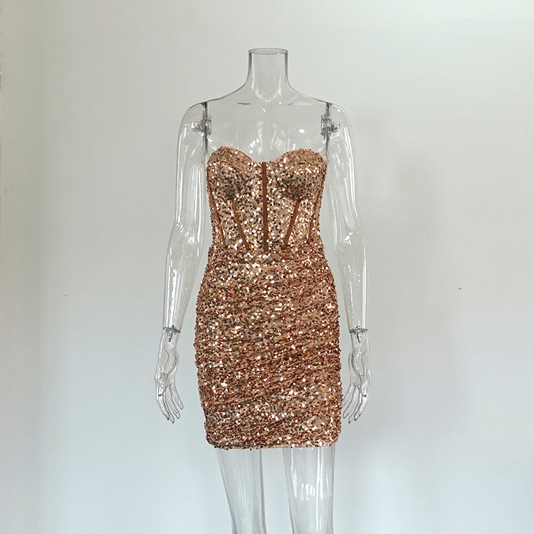 Mini-robe de bodycon scintillant des femmes avec des os du corset