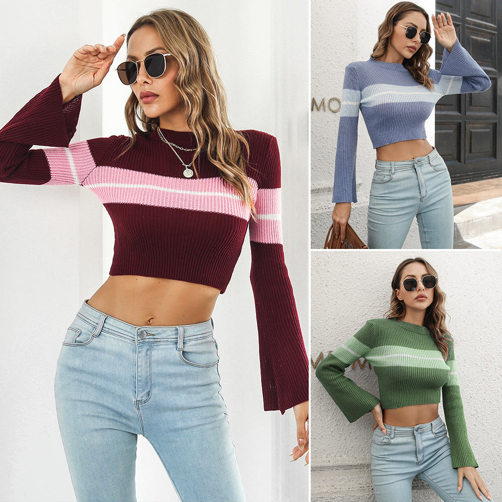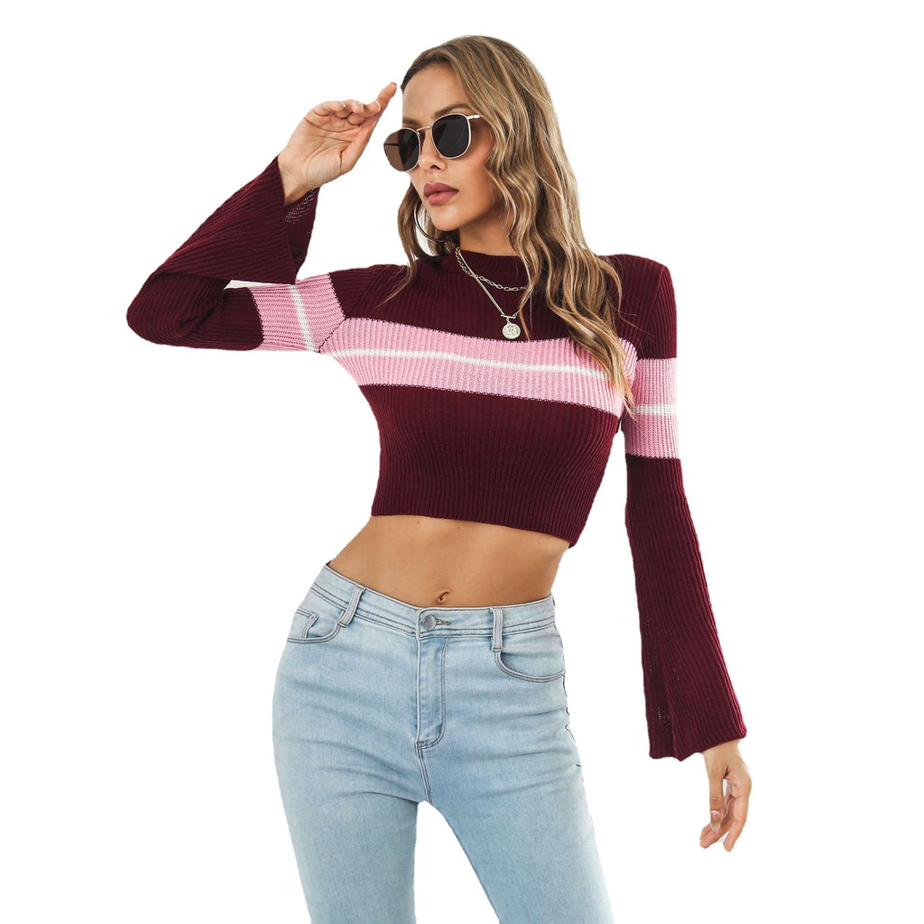 Offrez votre amour du style rétro lorsque vous portez le pull recouvert de femmes avec des rayures et de longues manches de cloche. La combinaison des manches ourlées et cloche recadrées lui donne un attrait des années 1970.