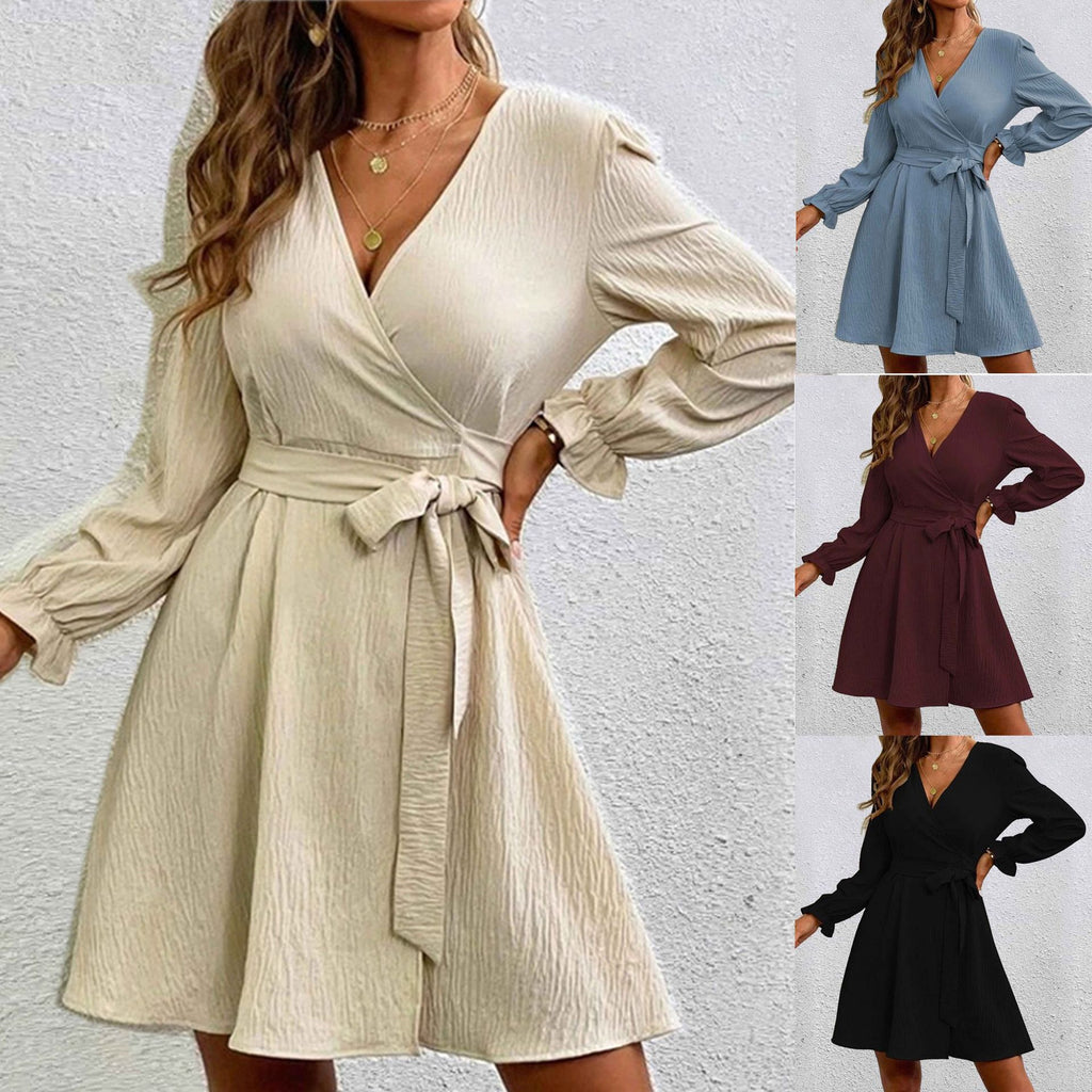 Cette robe enveloppe en V chic avec un noeud papillon est une façon flatteuse et confortable de s'habiller de jour et de nuit. Il dispose de plusieurs options de couleurs neutres qui se marient bien avec toutes les chaussures ou autres accessoires.