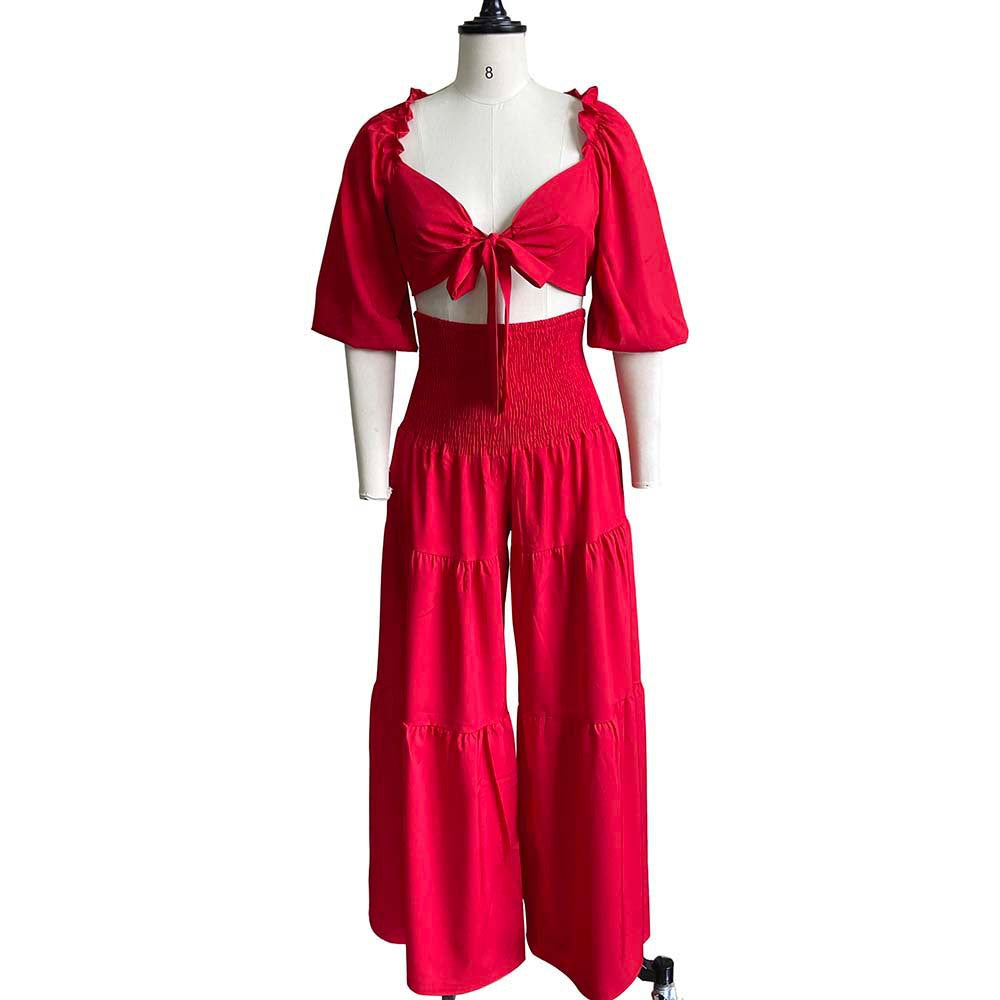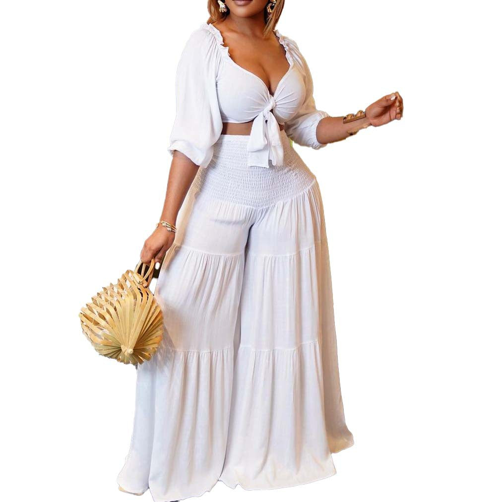 महिलाओं के दो टुकड़े को ऊपर और ढीली फिटिंग पैंट सेट किया गया
