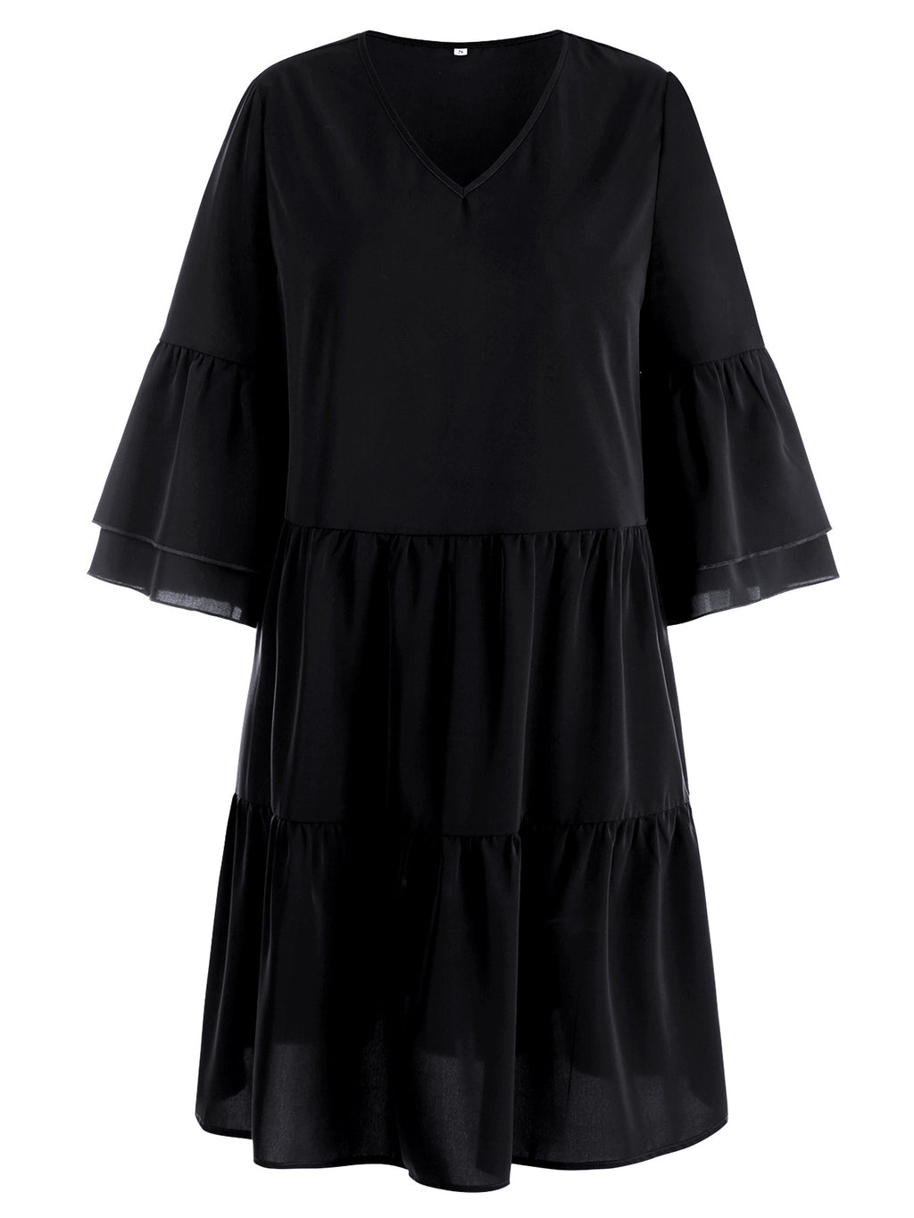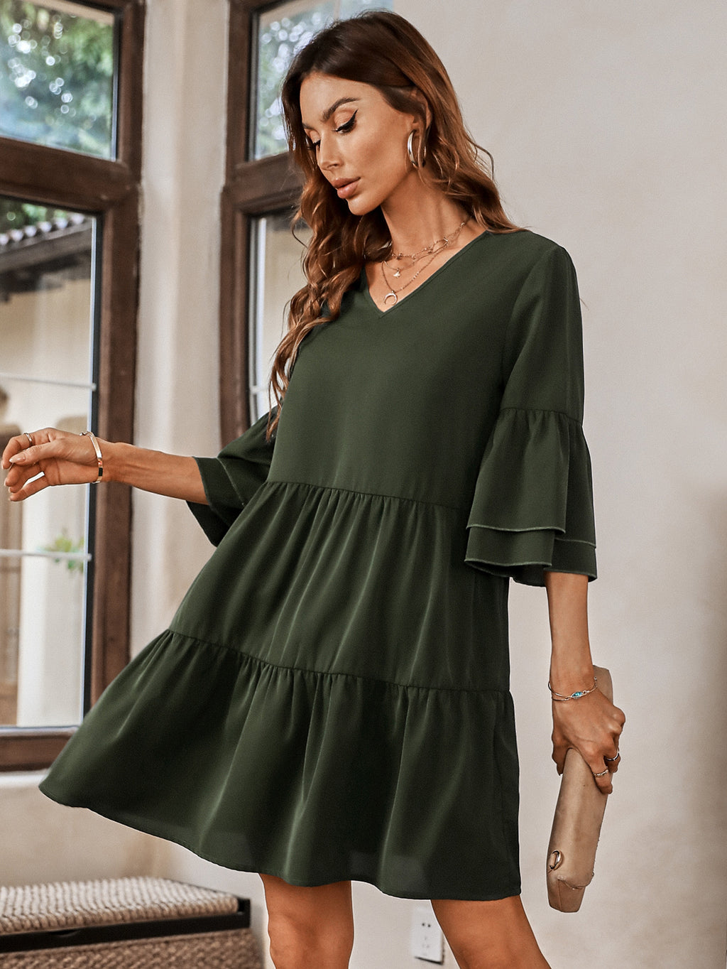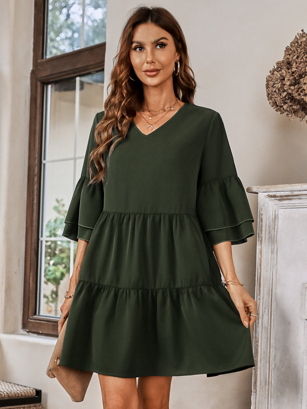 Gaun A-Line Longgar Wanita dengan Lengan Ruffle