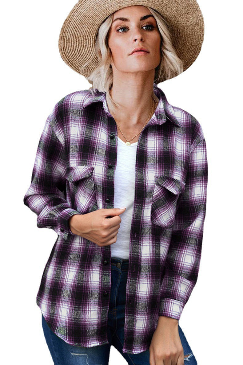 Kancing kotak -kotak longgar lengan panjang ke bawah