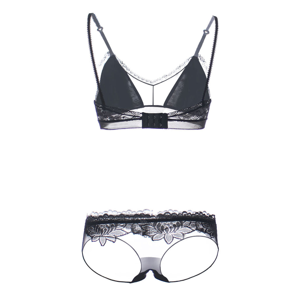 Tinggalkan sedikit ke imajinasi dalam renda klasik, Tali T Bra dan Hiphugger yang ditetapkan lengkap dengan bra semi-sheer dan celana dalam tembus pandang.