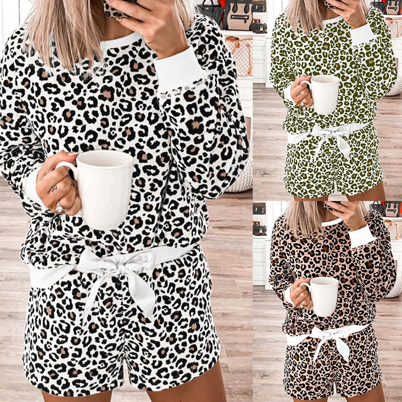 Merasa ganas sambil bersantai di rumah mengenakan set leopard lounge cetak dua bagian wanita dengan lengan panjang. Ini fitur sepasang celana pendek yang cocok dengan pinggang elastis dan dasi untuk menyesuaikan kecocokan.