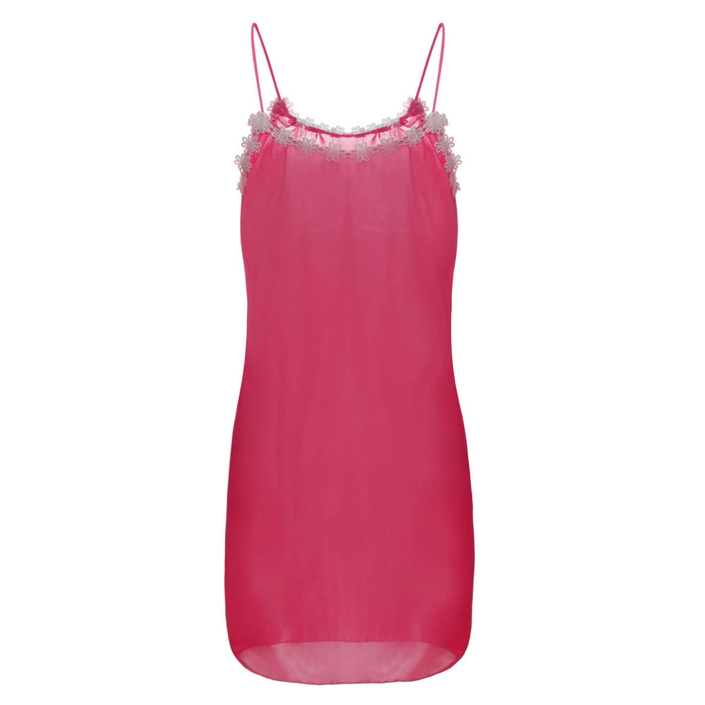 Con delicati rifiniture floreali lungo le braccia e il collo, l'abito da slittamento della lingerie di fiore viene trasformato da un semplice slip in qualcosa di dolce e romantico.