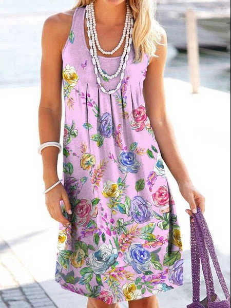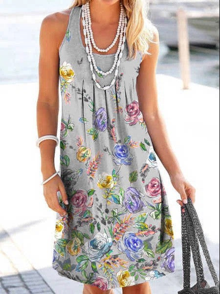 Abito floreale a U-collo a U-collo