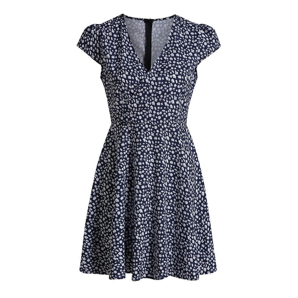 Sembra carino e chic quest'estate che indossa la forma che si adatta al vestito midi a maniche corte a V-Nine a V. Viene nella tua scelta di colori ed è modellato da materiali traspiranti e leggeri.
