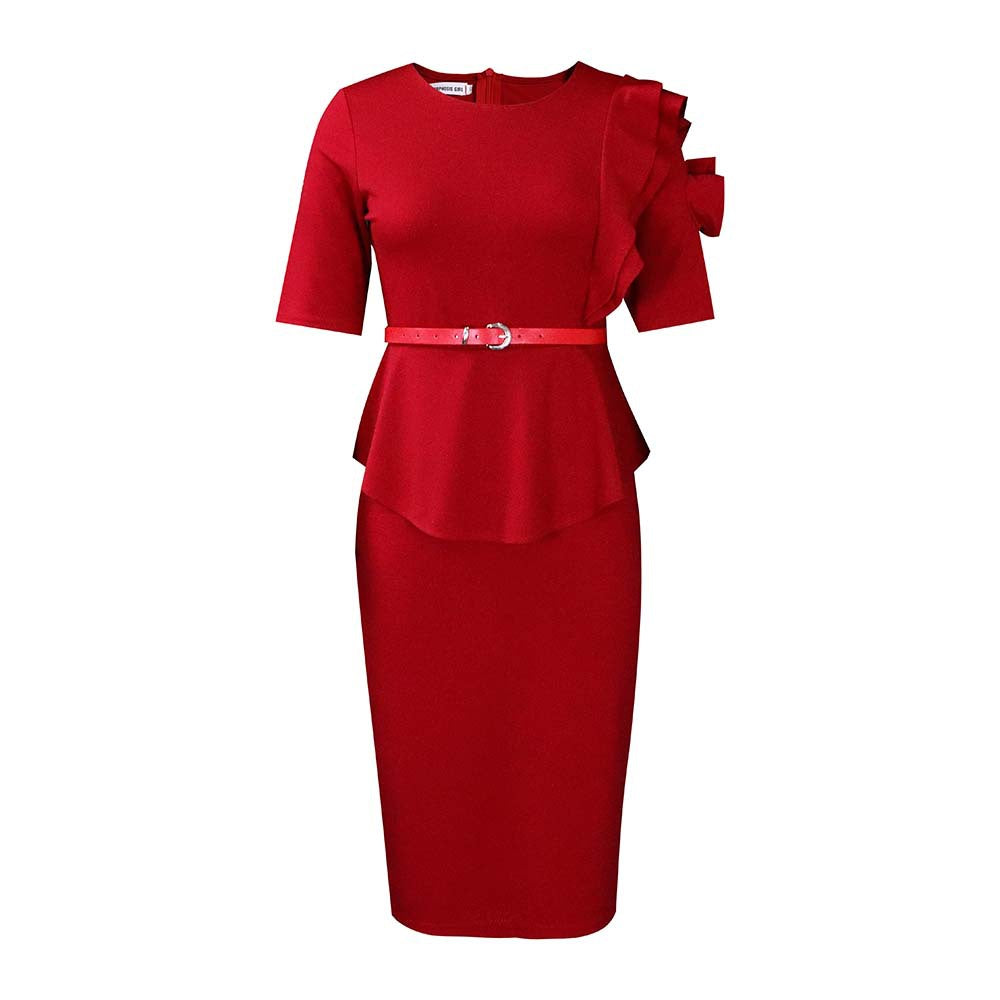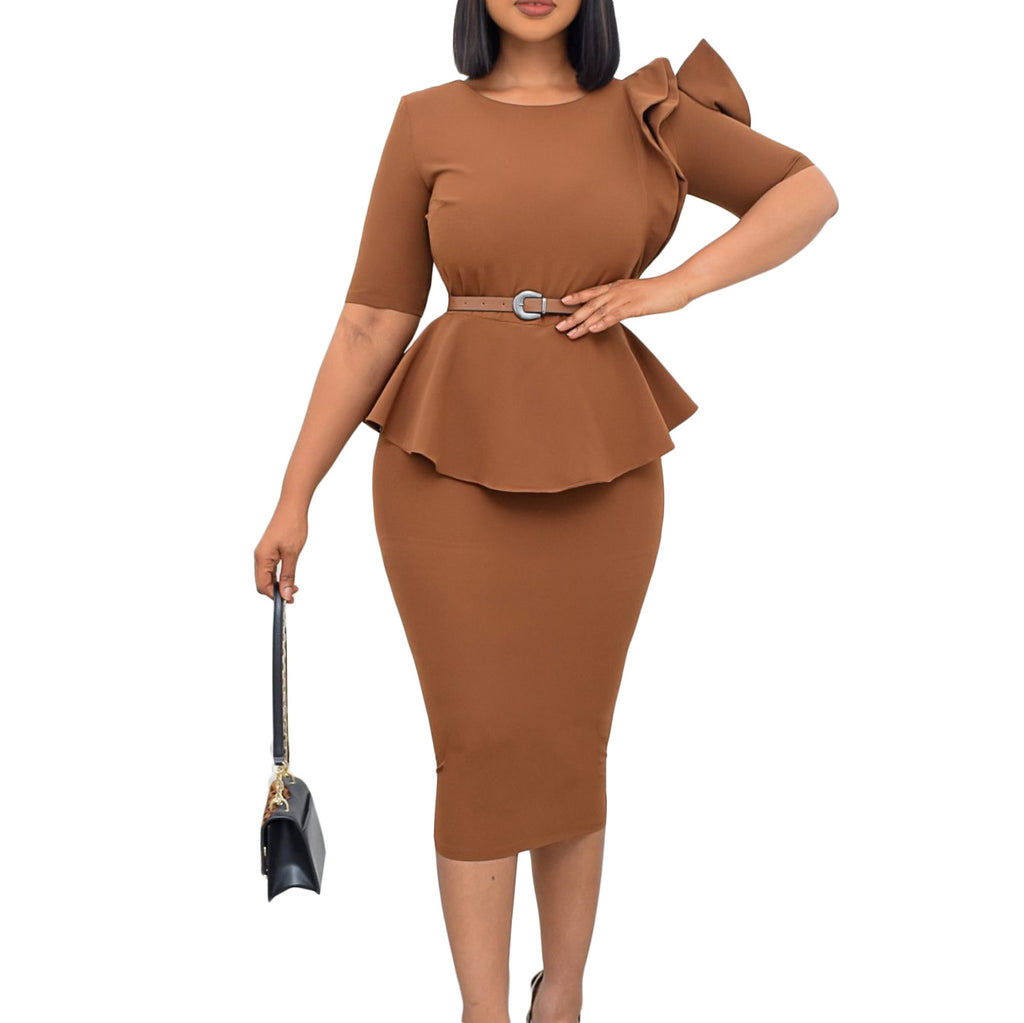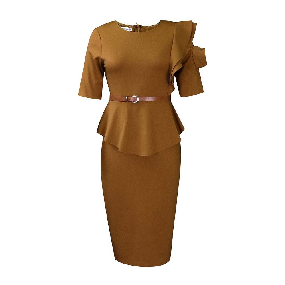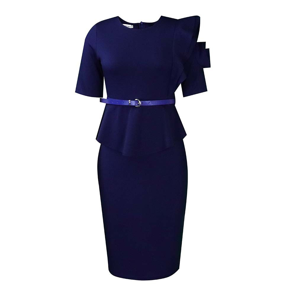 Sentiti fiducioso in qualunque cosa tu stia facendo quando indossi il set di gonne per peplo e matita femminile con manica a goccia con un design su una manica e una cintura sottile intorno alla vita per accentuare le curve.