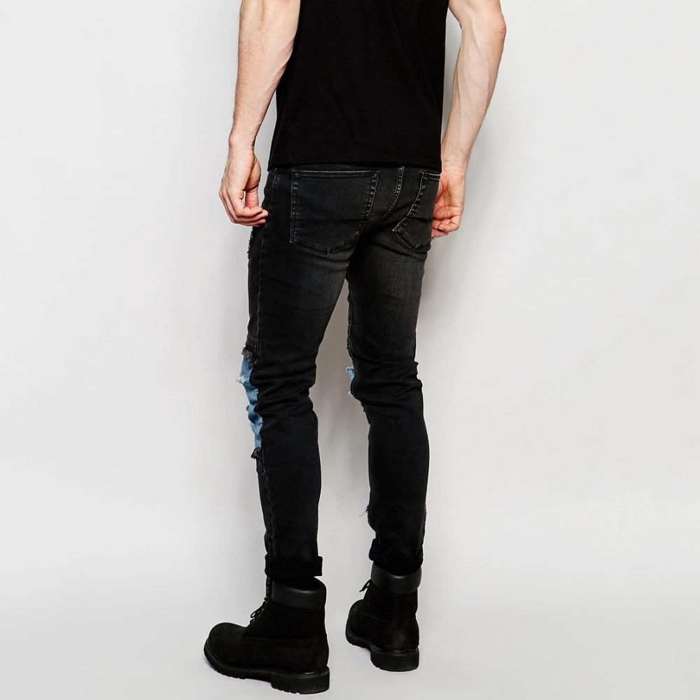 Men’s Dark Black Skinny Denim Jeans with Rips