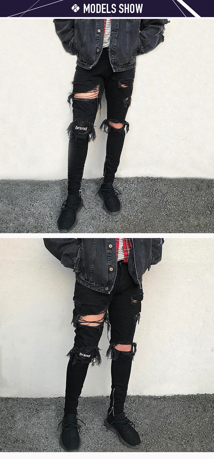 Bring your favorite style trends of the 2000s to life with the Men’s Dark Black Skinny Denim Jeans with Rips that are placed along the thighs and knees.
