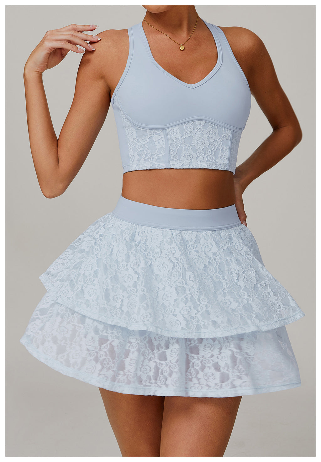 メッシュレースヨガスカートは、通気性のあるアクティブな快適さを備えています