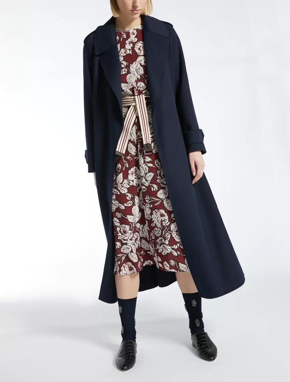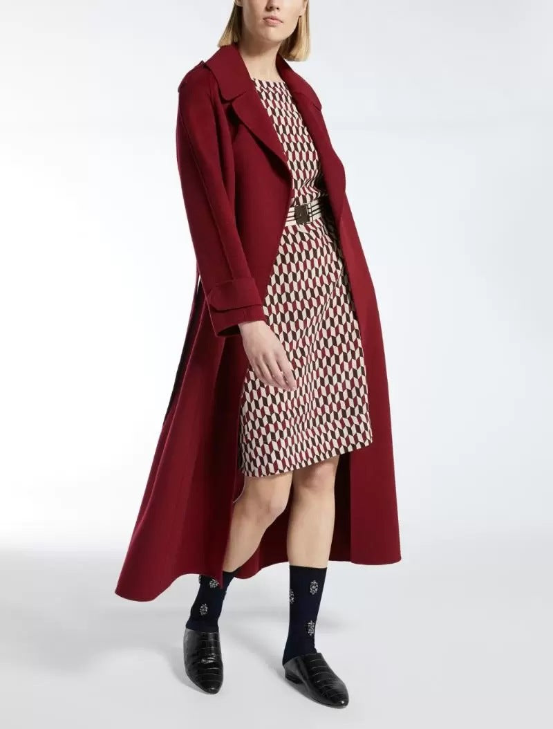 覆い、長袖と長い裾の女性のアウターウェアのオーバーコートでかわいいように見えます。あなたのスタイルの感覚に合わせて、ダークブルーまたはダークレッドのいずれかで利用できます。
