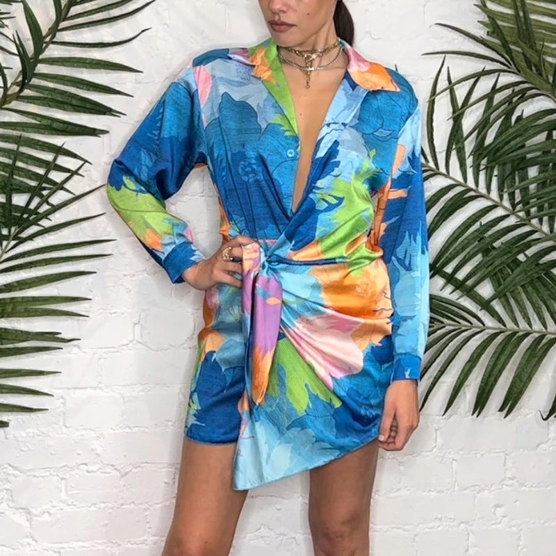 今年の夏、どんなパーティーでも、大胆で活気のある色とパターンで注意を奪う女性の長袖のミニラップドレスを着て、どんなパーティーでも頭を向けます。