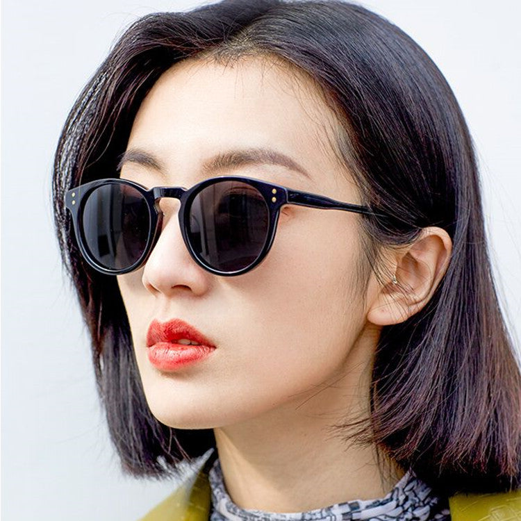 Kleine cirkelvormige lenzen geschetst door puntige volledige randframes en een hoge neus maken deze cirkelvormige volle velg plastic moderne zonnebrillen opvallen. Deze chique tinten zijn beschikbaar in uw keuze uit framekleuren.
