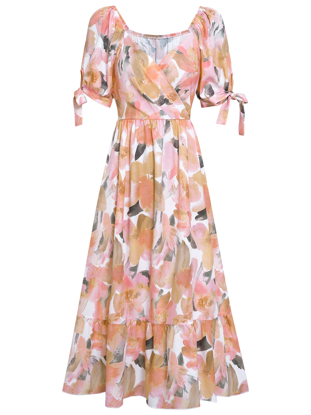Stap in de Springtime Spirit met de korte mouwen van de vrouwen met korte mouwen, met een sweetheart halslijn en banden rond de mouwen voor een unieke finishing touch.