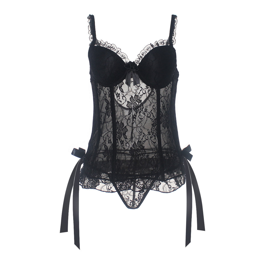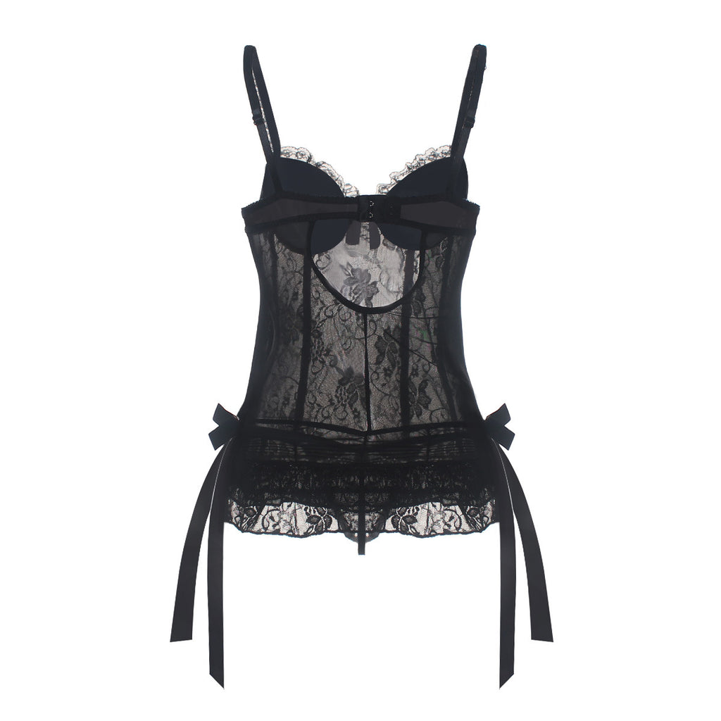 De satijnen boog van de satijnen kant van de satijnen boog-lingerie set is een gewaagde, tijdloos verleidelijke set met aanwijzingen met kant en strikken met kant en bogen zo ver als het oog kan zien.