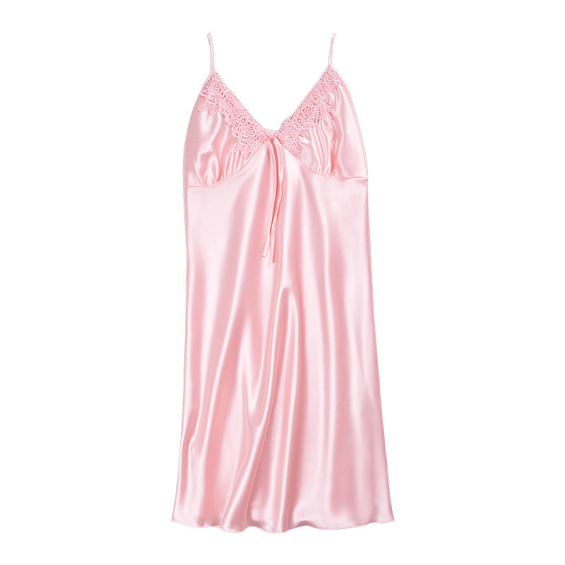 Deze dames slipjurk met kanten V-hals en mini-lengte zoom is een schattig en chique stuk kleding om te slapen. Het komt in uw keuze uit verschillende kleuren, die allemaal een lichte glans hebben.
