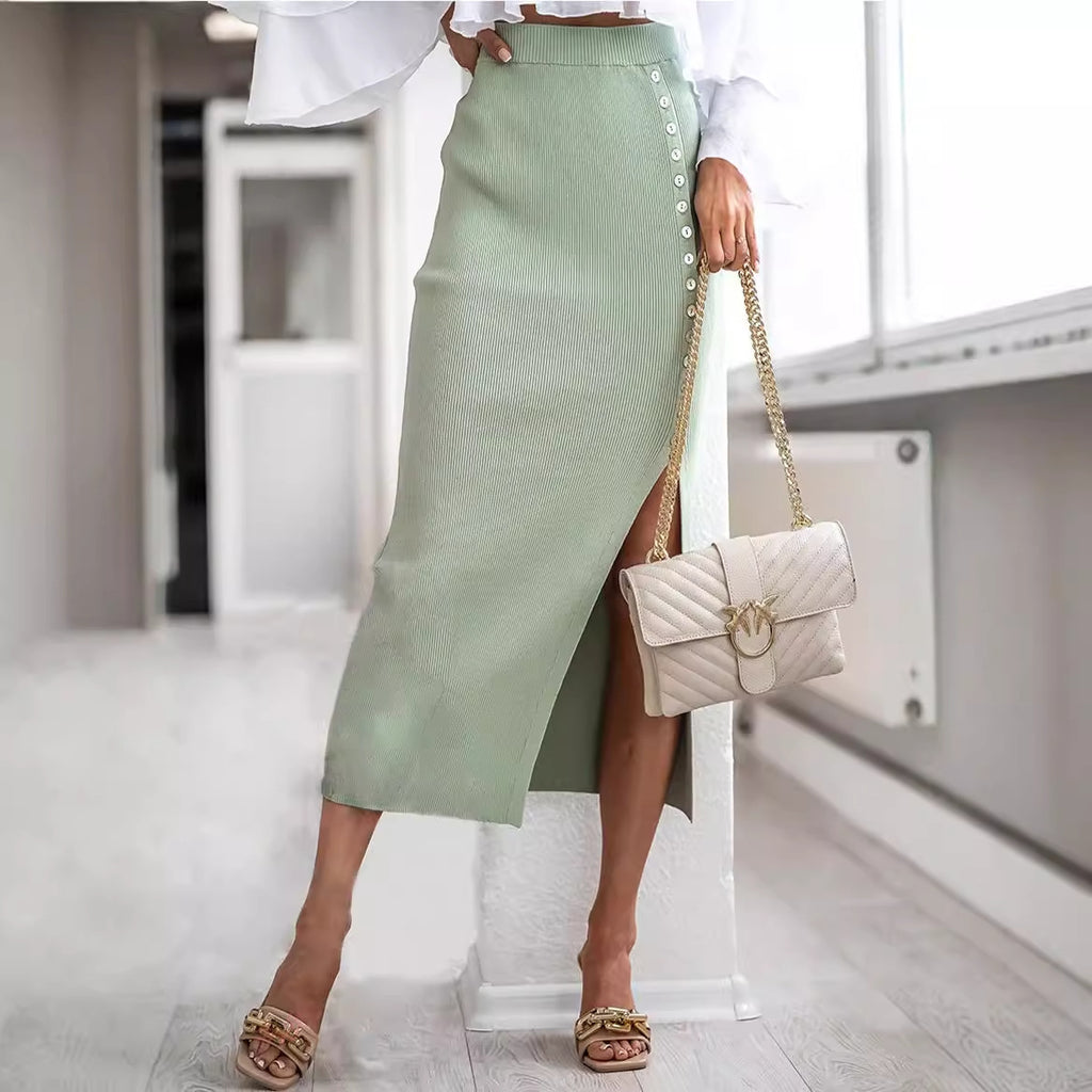 Deze geribbelde rok heeft een subtiel verzonken streeppatroon voor extra textuur. Comfortabel en veelzijdig, het is ideaal voor vrijetijdskleding, kantooroutfits of gelaagdheid in koelere seizoenen.