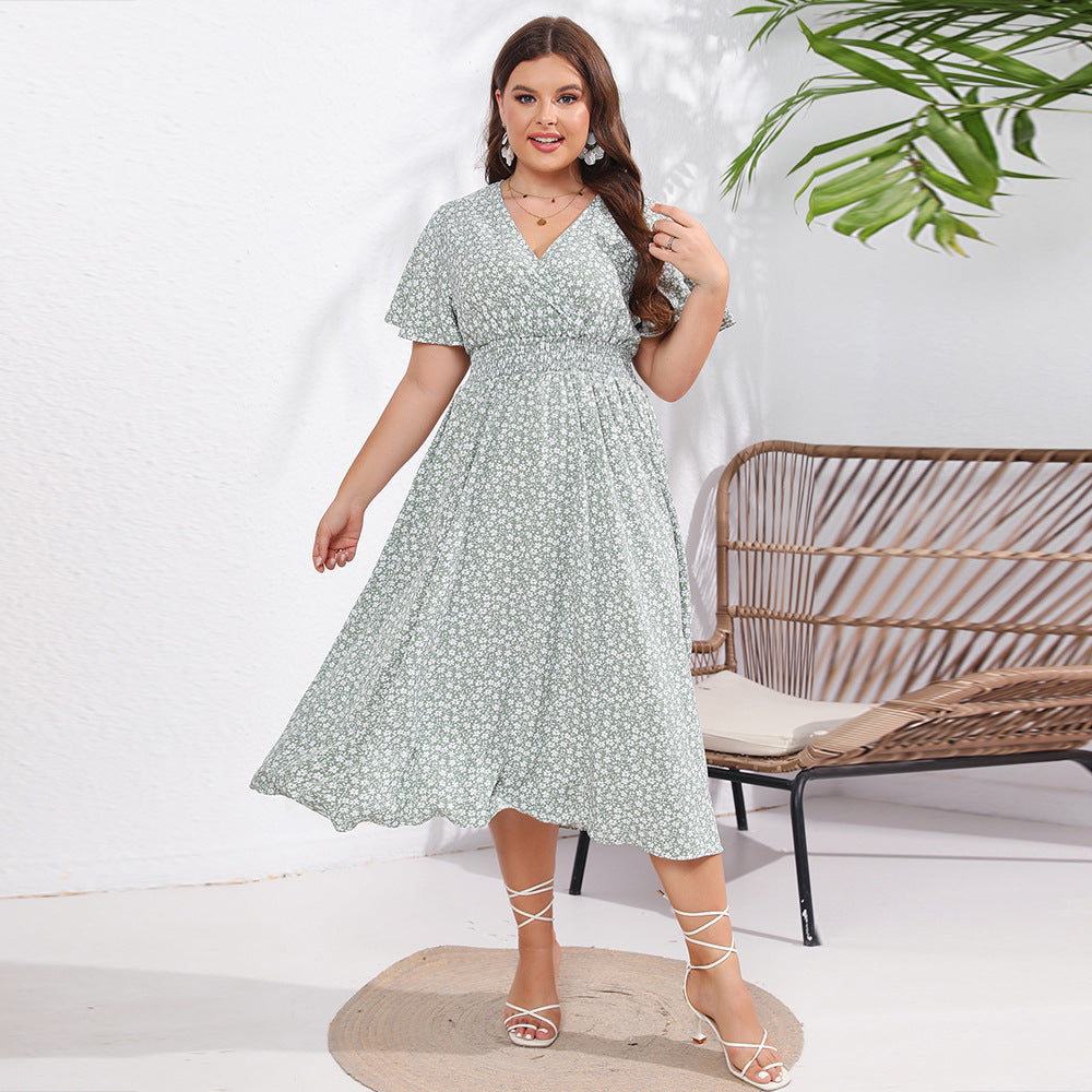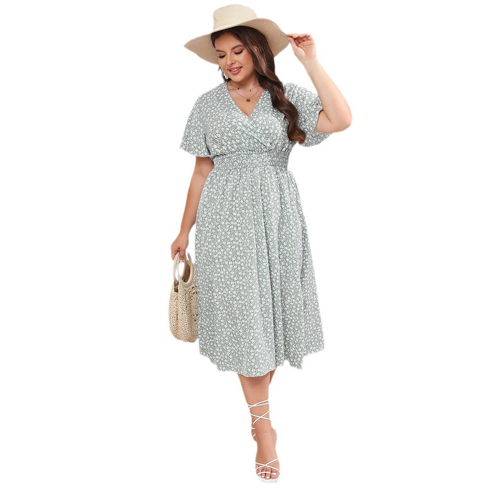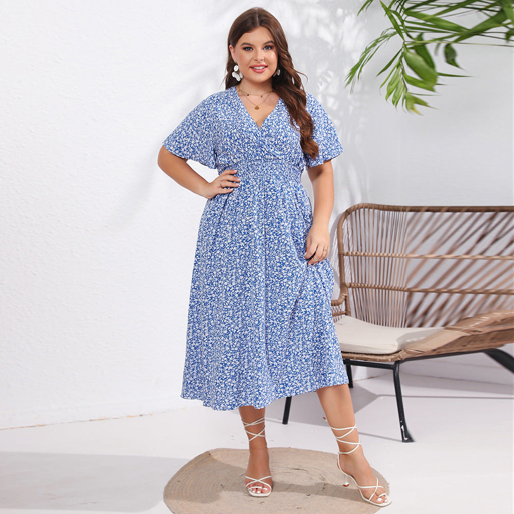 Dames met korte mouw losmaken Midi -jurk