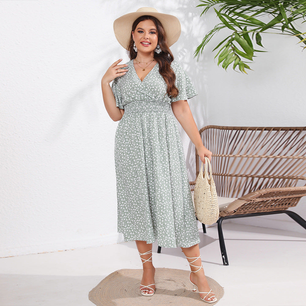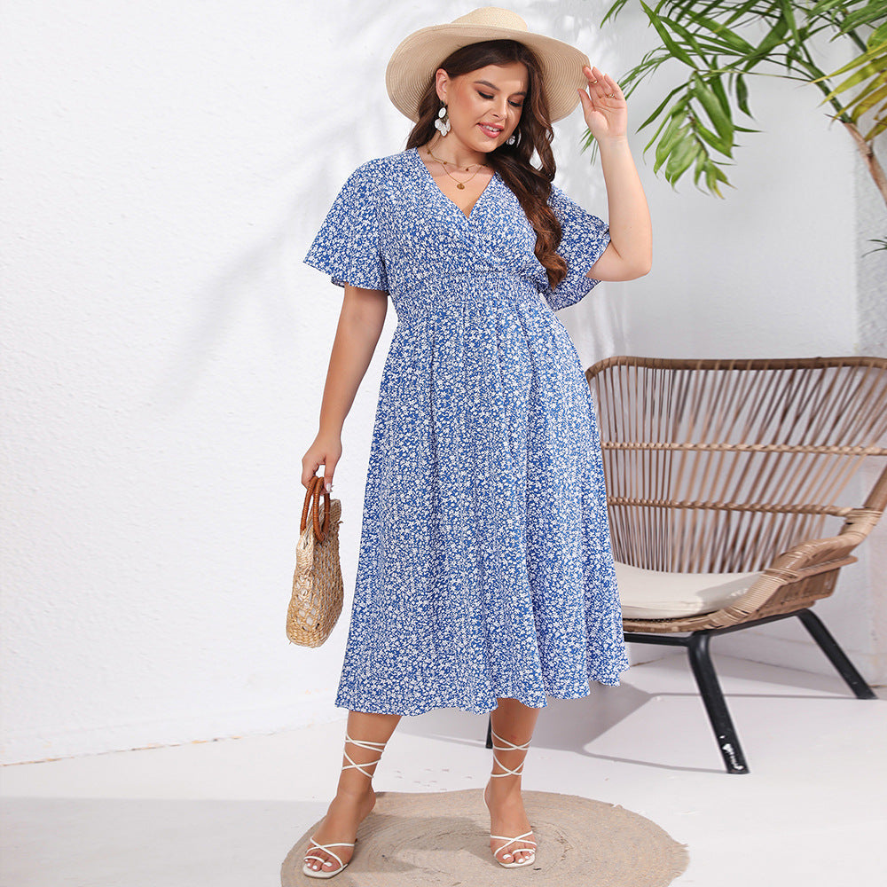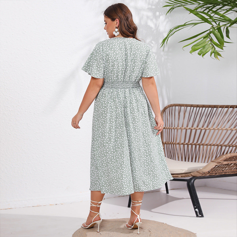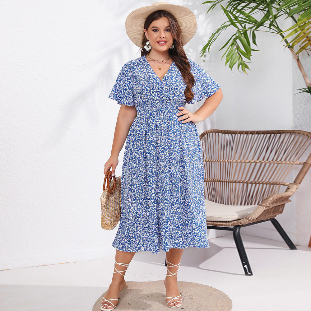 Dames met korte mouw losmaken Midi -jurk