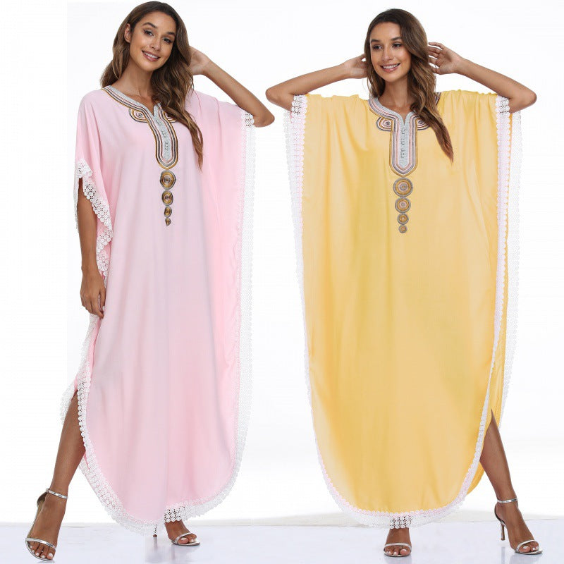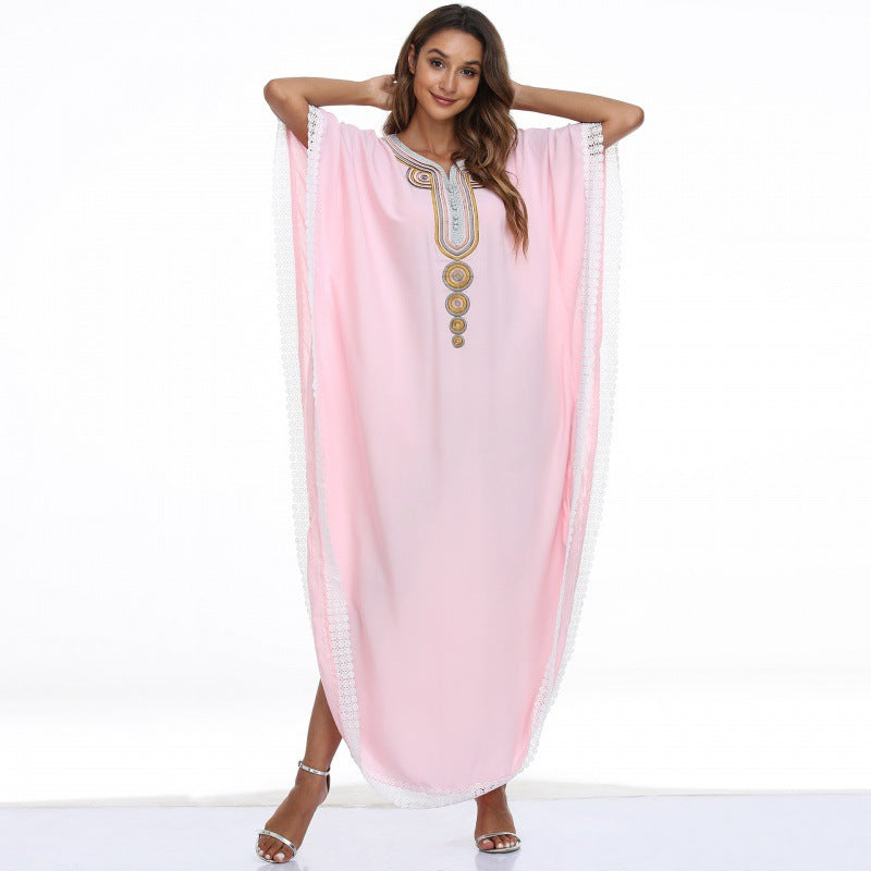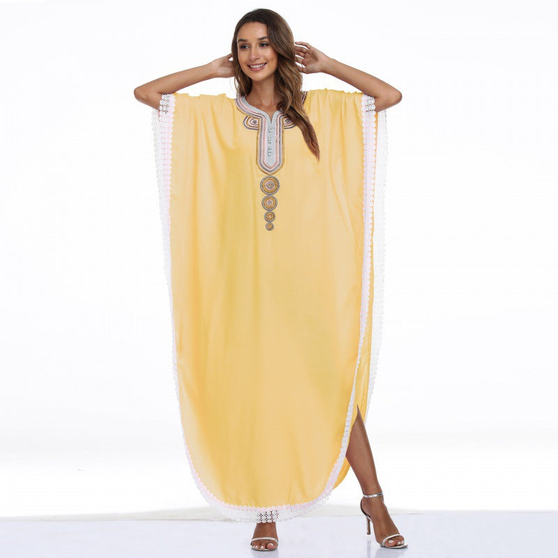 Make a statement wherever you go wearing the Women's Loose Fitting Greek Style Poncho Dress. This one of a kind dress comes in your choice of either pink or yellow hues.
