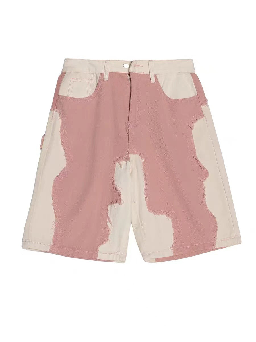 Display your unique personality with the Men’s Long Denim Pink and White Shorts which feature an artistic, abstract section of pink denim over the white.