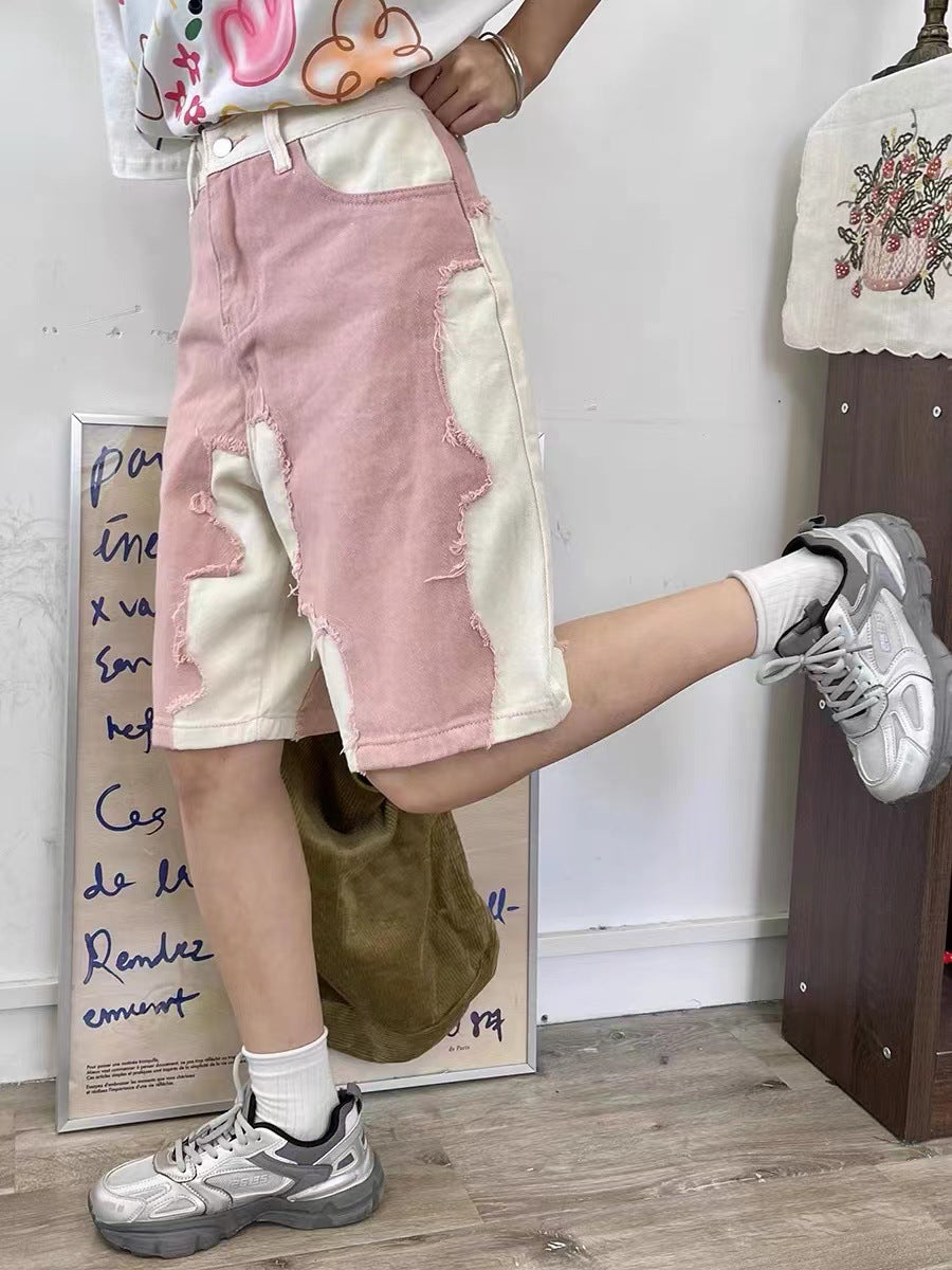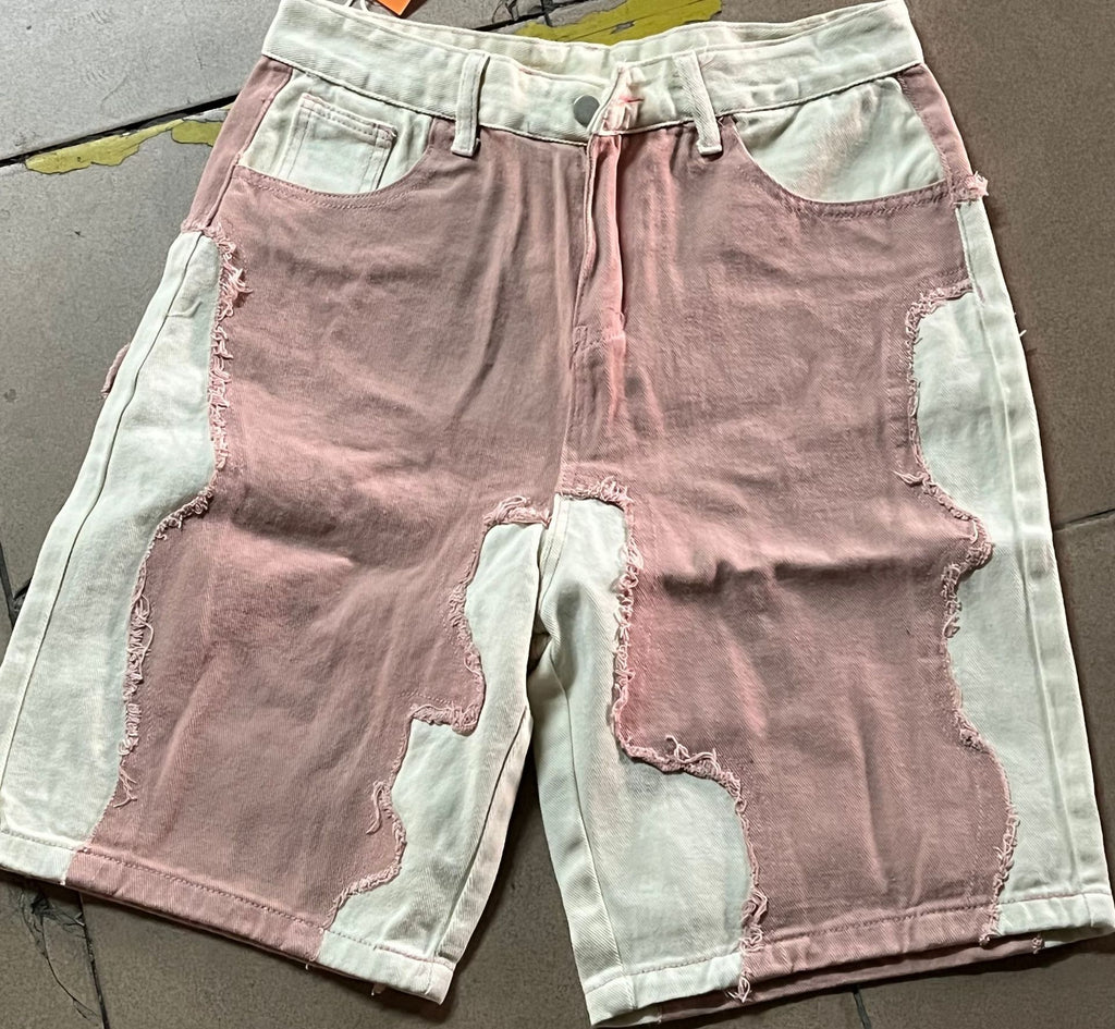 Men’s Long Denim Pink and White Shorts