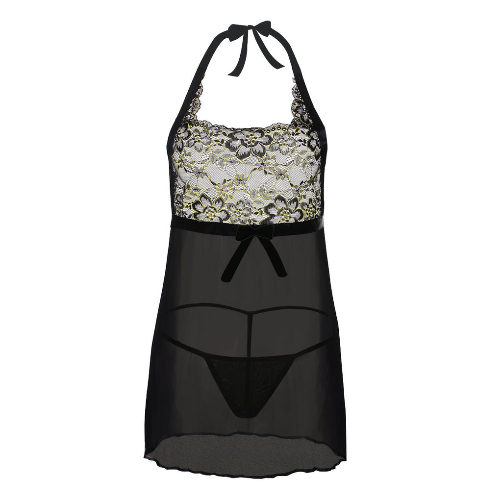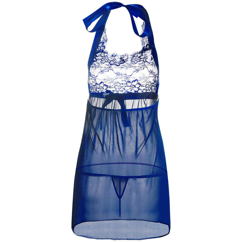 Simple and chic, the Satin Bow Lace Top Halter Babydoll Set features a lacy décolletage with a see-through mesh skirt sure to inspire romantic thoughts.