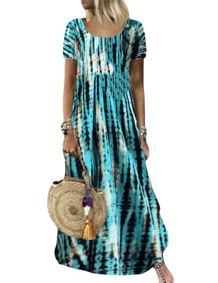 Short Sleeve Patterned Maxi Dress