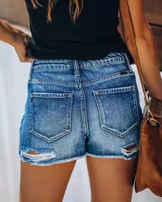 Show off your patriotic pride this summer wearing the Women’s American Flag Ripped Denim Shorts that feature the stars and stripes on the back pockets.
